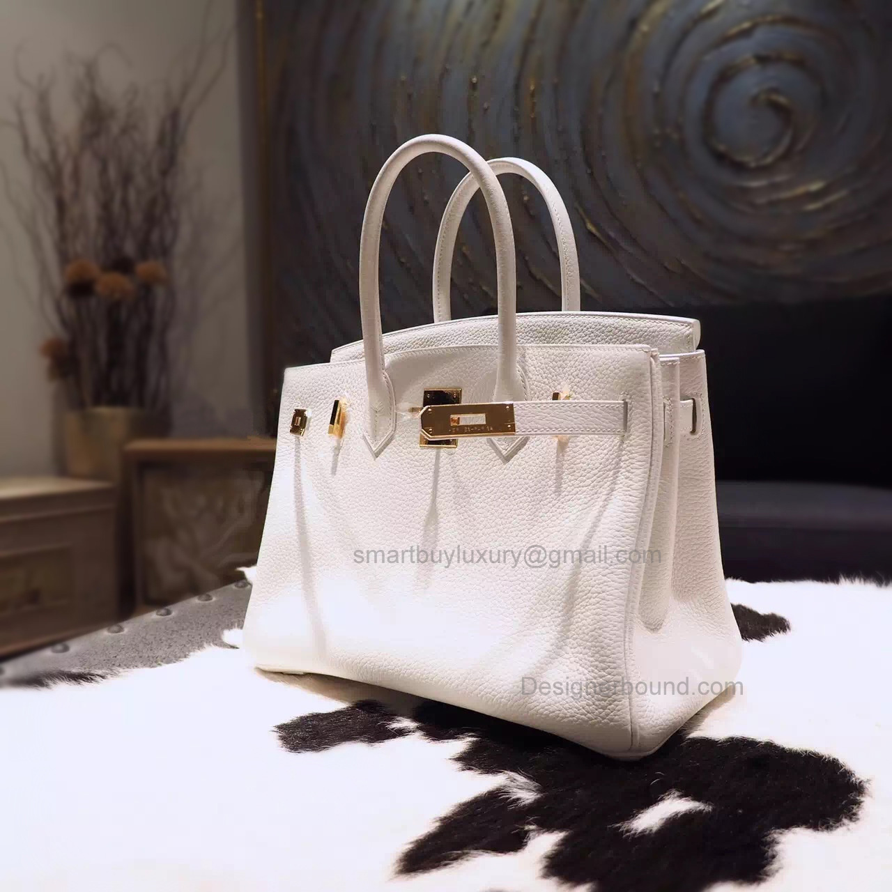 Hand Stitched Hermes Birkin 30 Bag in ck01 Blanc Togo Calfskin GHW