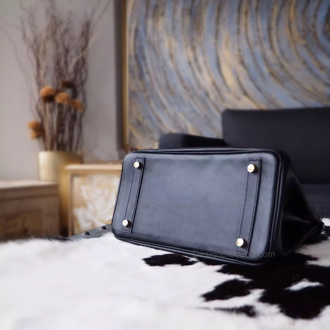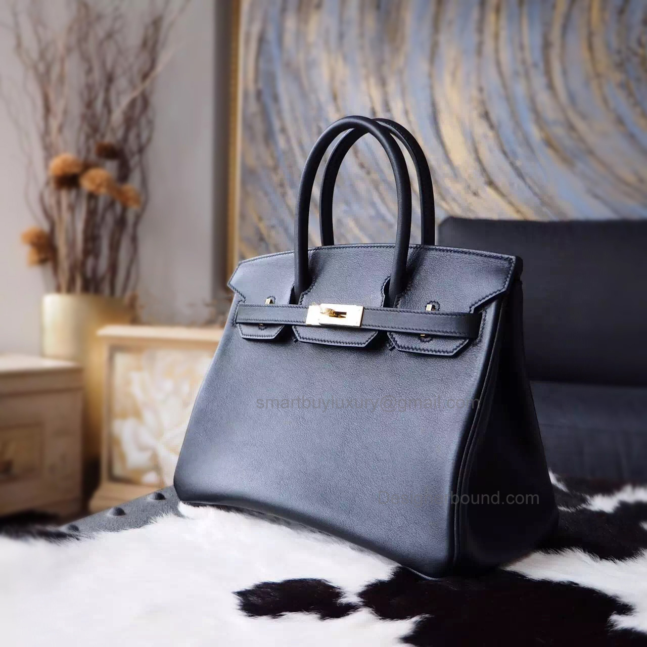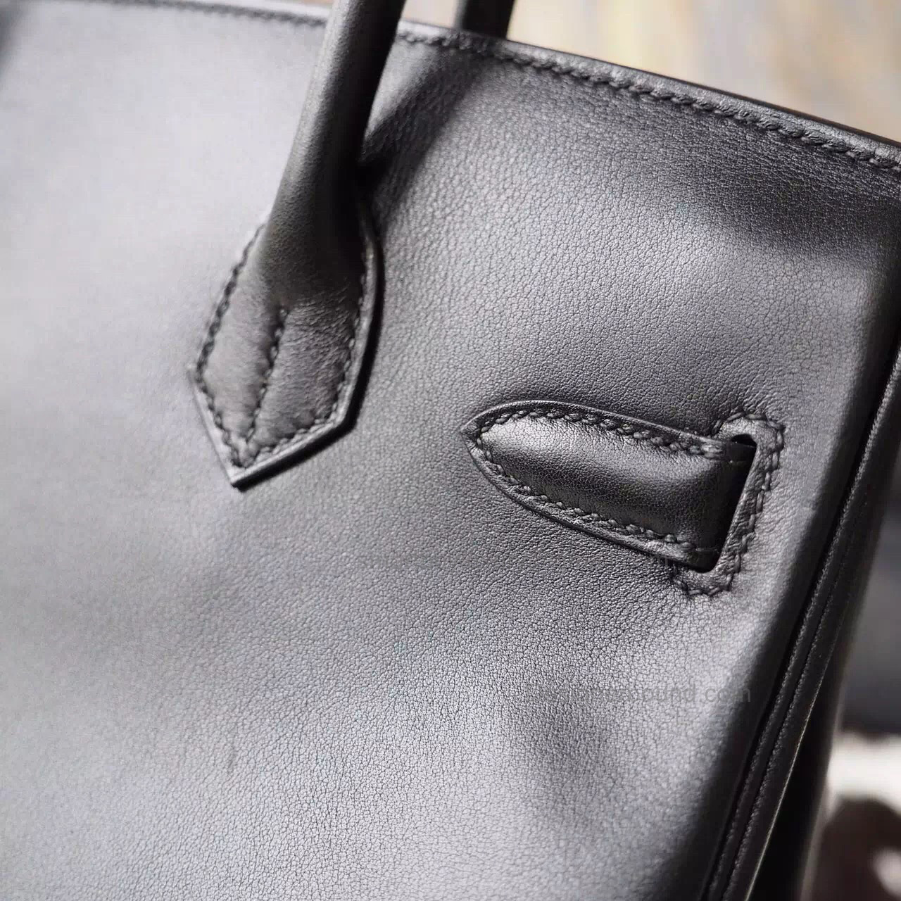 Hand Stitched Hermes Birkin 30 Bag in ck89 Noir Swift Calfskin GHW