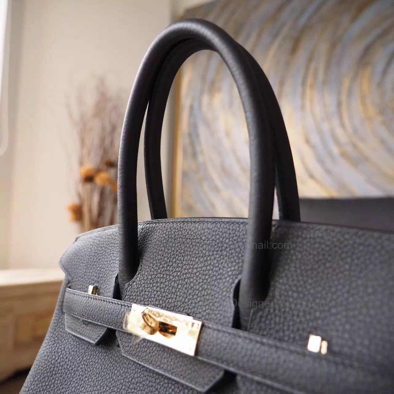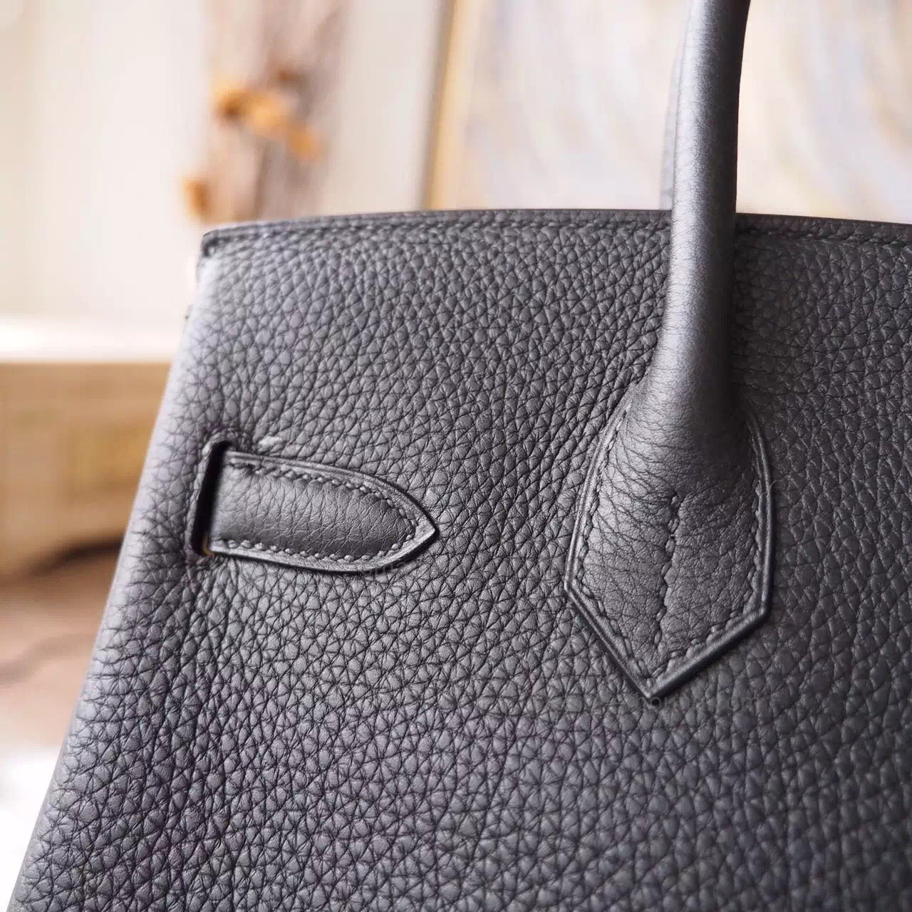 Hand Stitched Hermes Birkin 30 Bag in ck89 Noir Togo Calfskin GHW