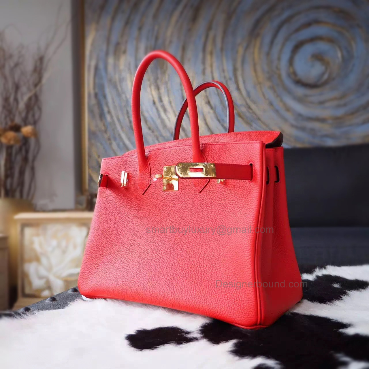 Hand Stitched Hermes Birkin 30 Bag in q5 Rouge Casaque Togo Calfskin GHW