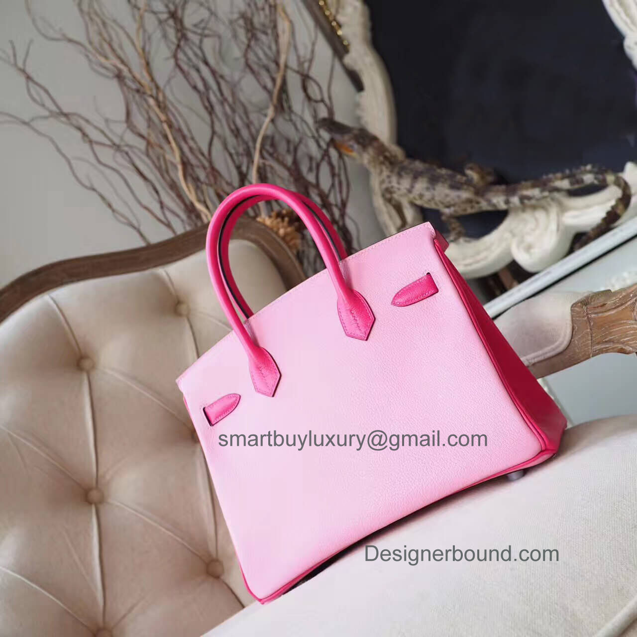 HERMES BIRKIN 30 HANDBAG IN BICOLORED P5 PINK CHEVRE MYZORE PHW
