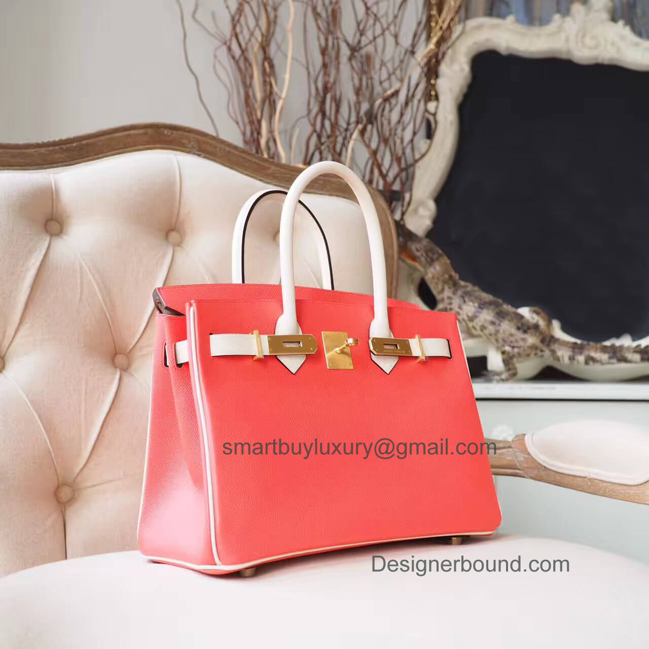 HERMES BIRKIN 30 HANDBAG IN BICOLORED T5 ROSE JAIPUR EPSOM GHW