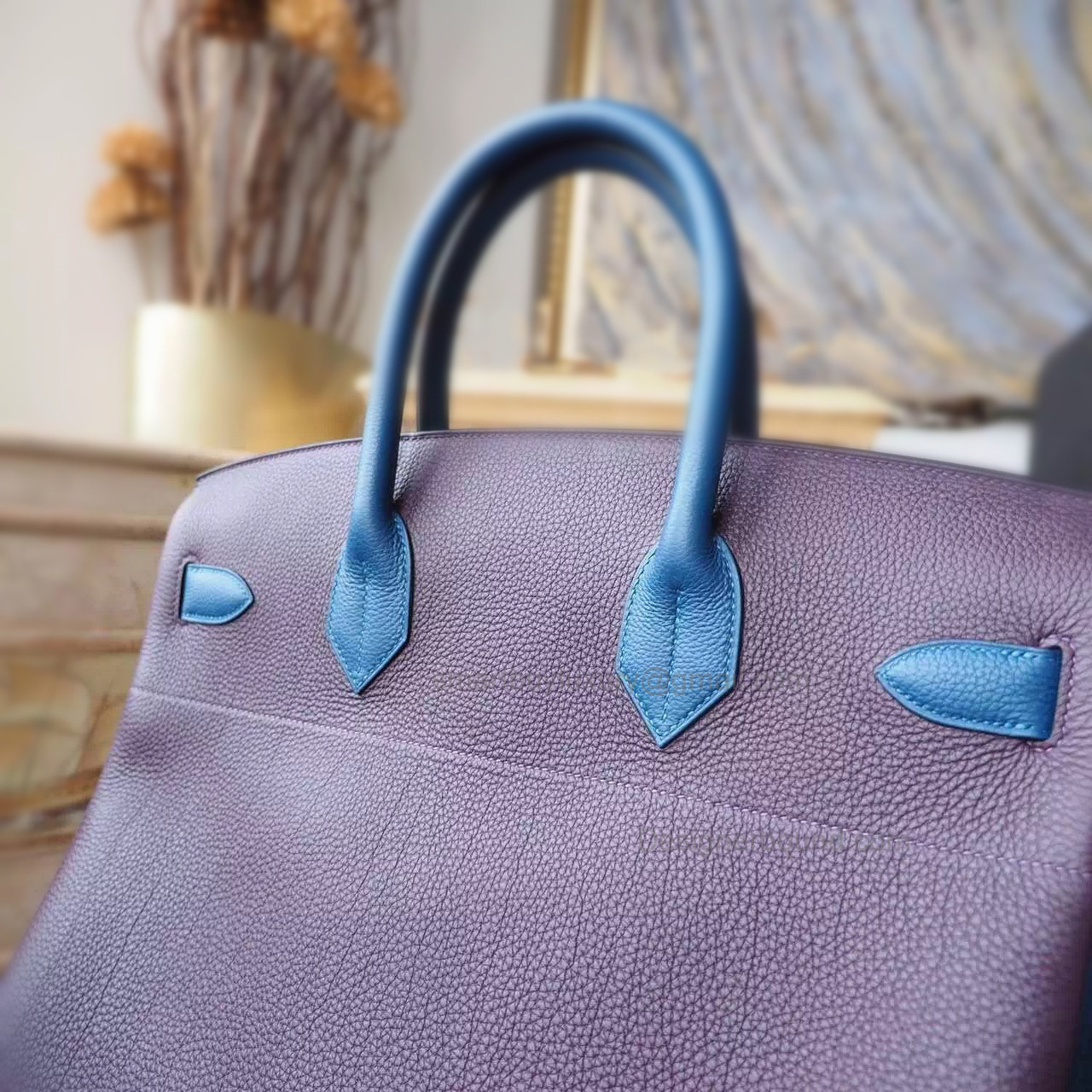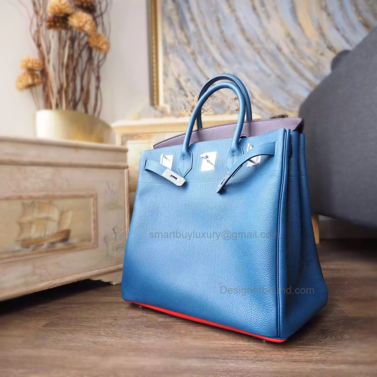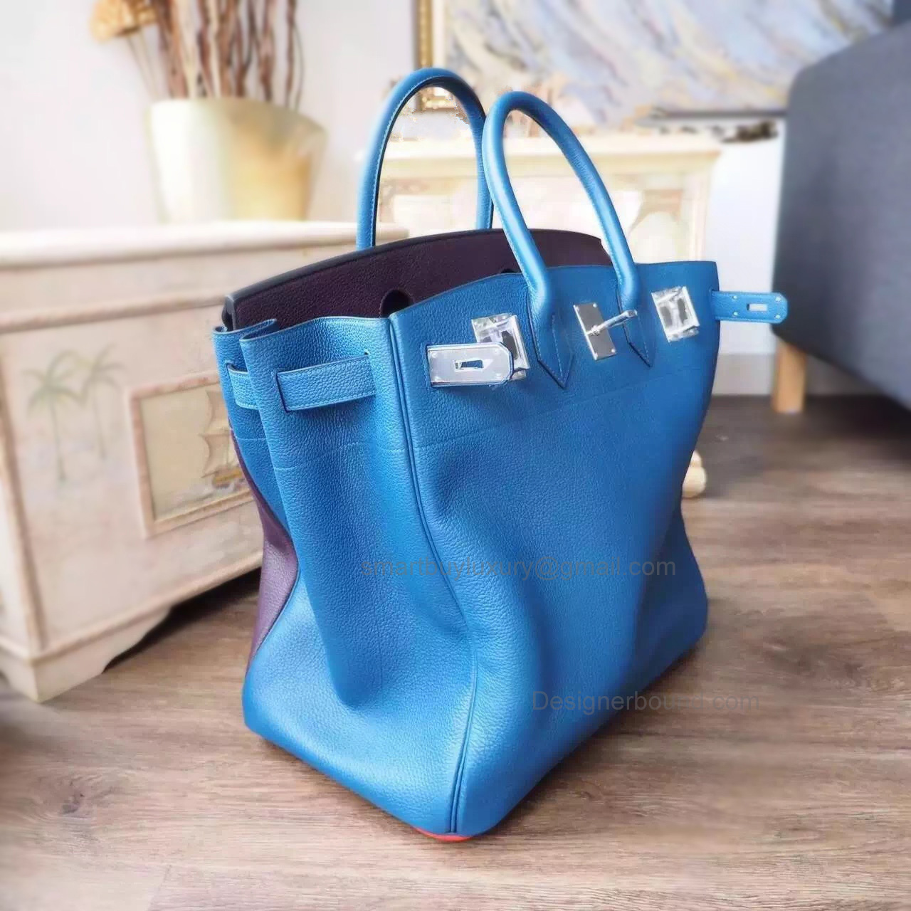 Handmade Birkin Hac 40 Bag in Multicolored 7w Blue Izmir Clemence Calskin SHW