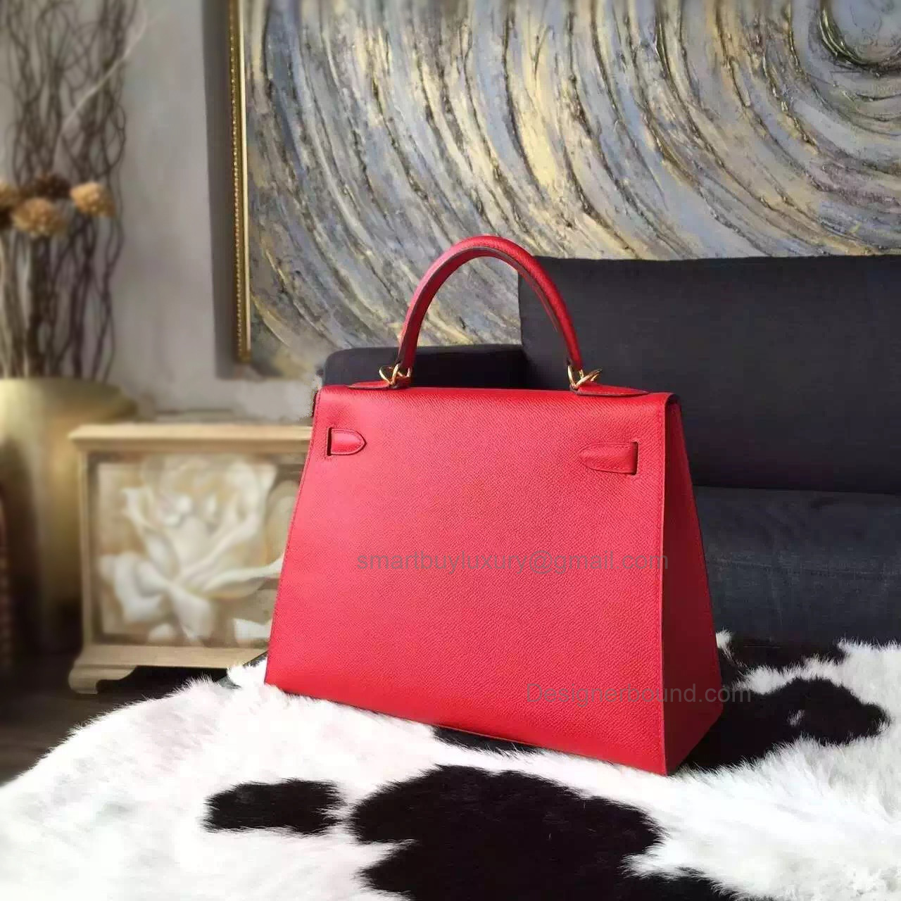 Hermes Kelly 32 Copy Bag in q5 Rouge Casaque Epsom Calfskin GHW