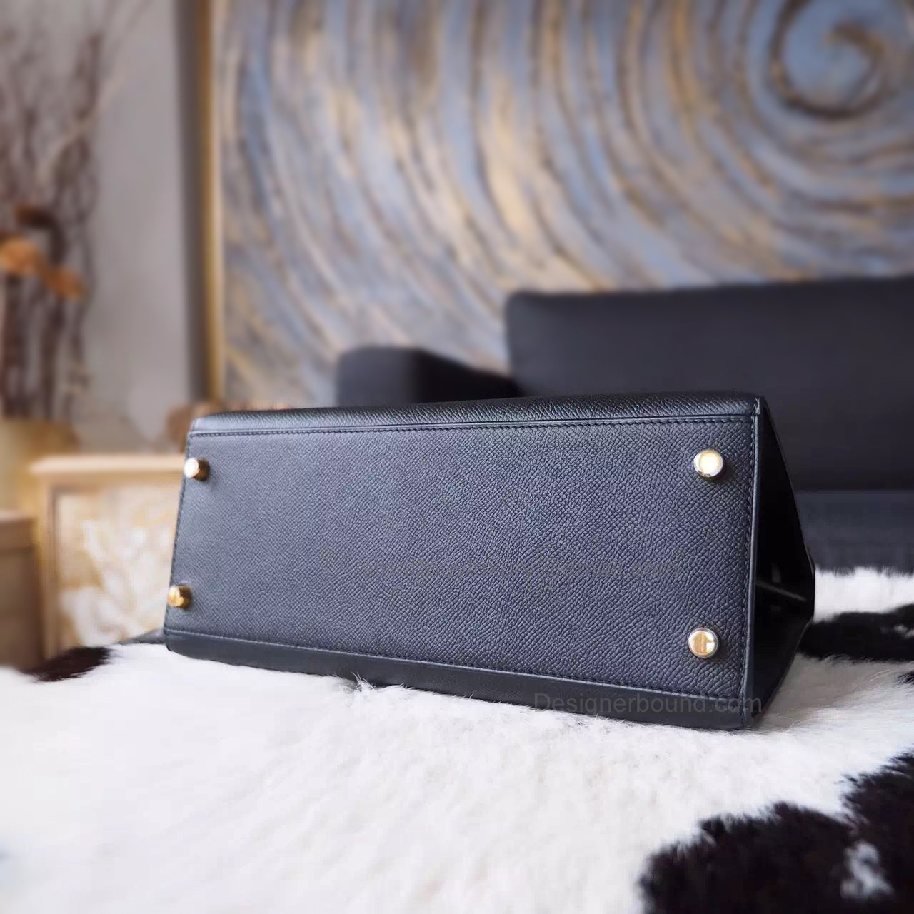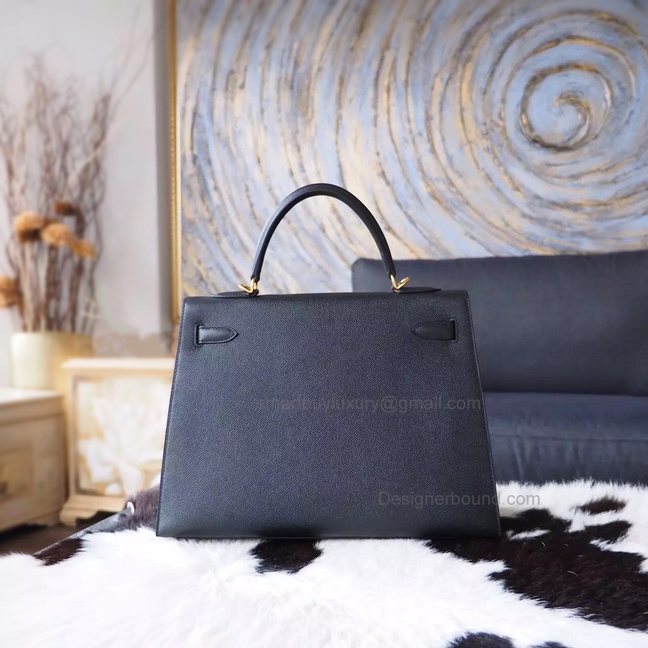Replica Hermes Kelly 32 Bag in ck89 Noir Epsom Calfskin GHW
