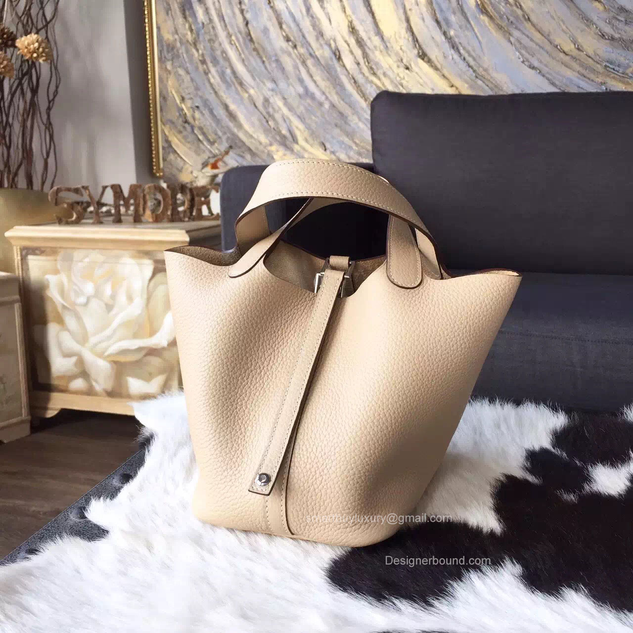 Hermes Picotin Lock 22 Bag Beige Taurillon Clemence Handstitched