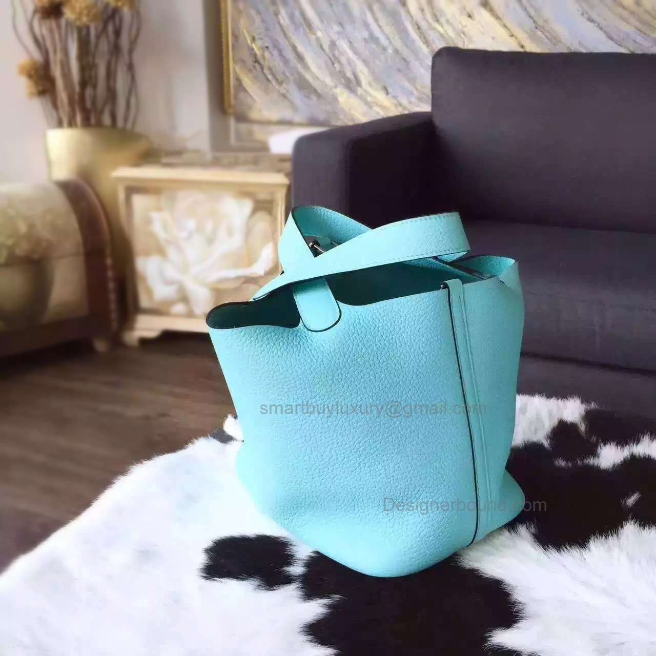Replica Hermes Picotin Lock 18 Bag Handmade in 3p Blue Atoll Clemence Calfskin
