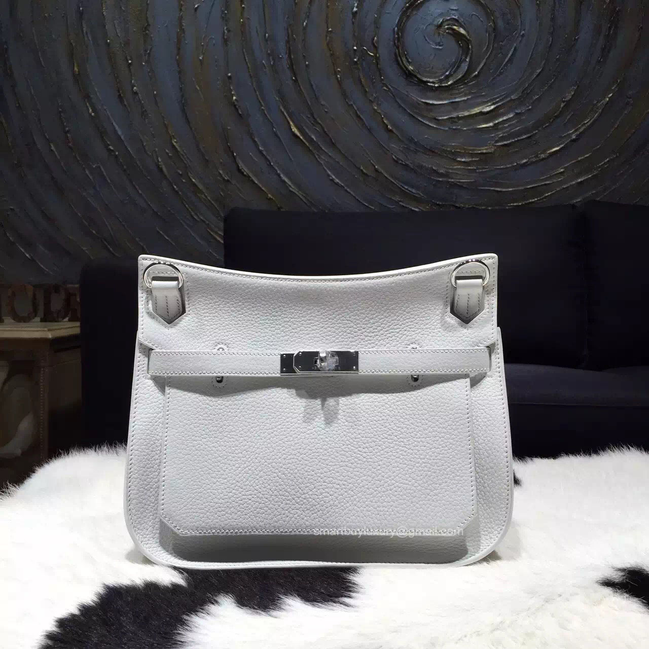 Hermes Jypsiere 34 Large Bag White Taurillon Clemence Handstitched