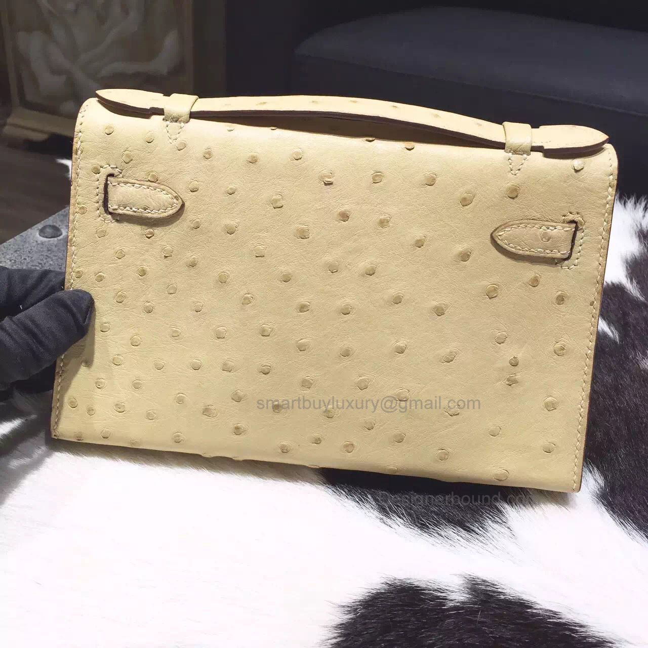 Copy Hermes Mini Kelly 22 PochetteBag Handmade in Beige Ostrich GHW