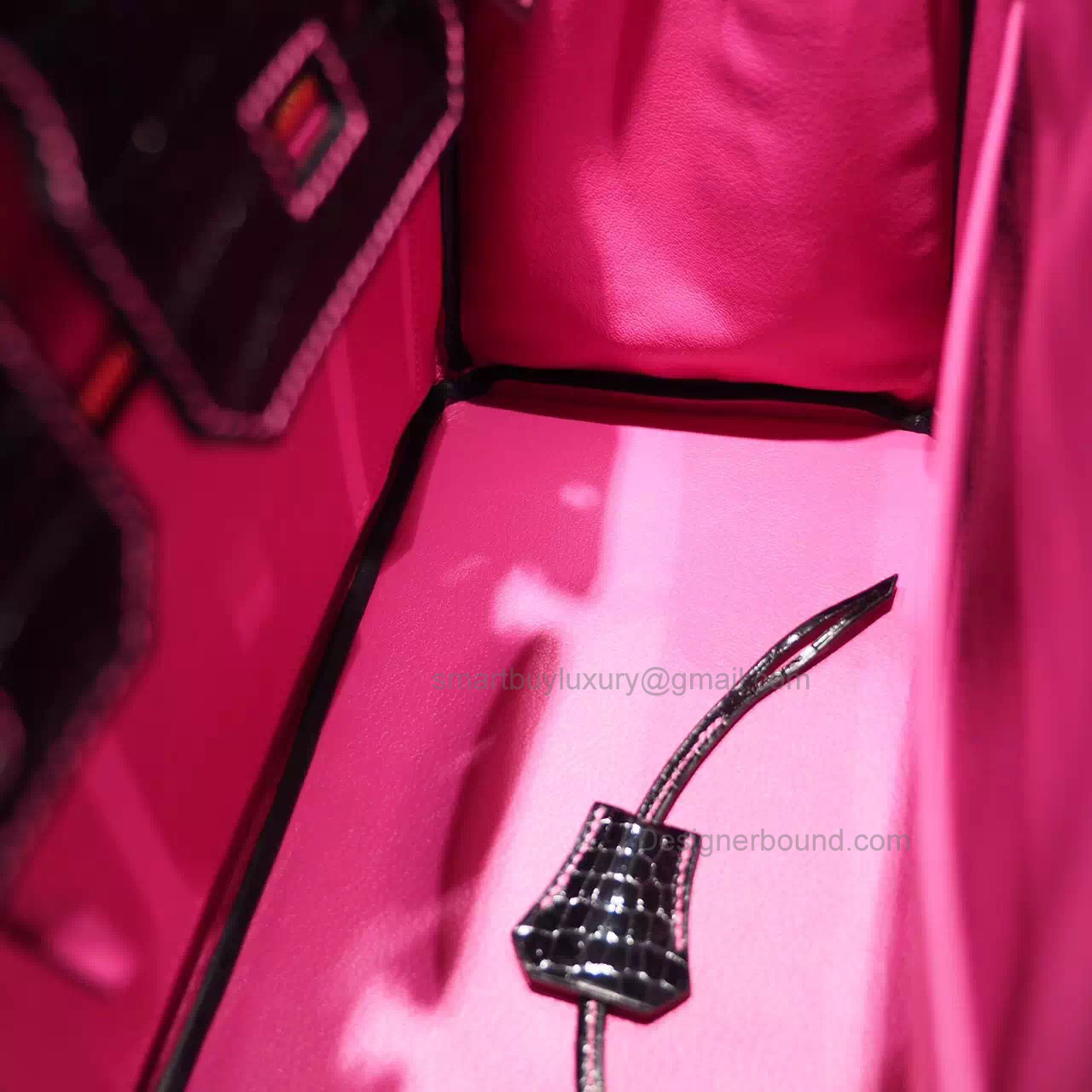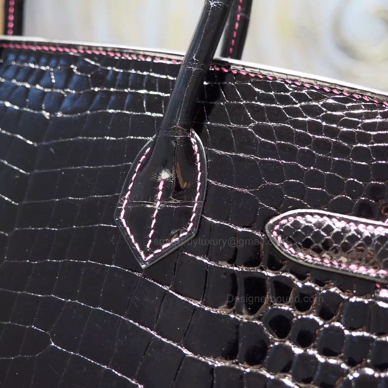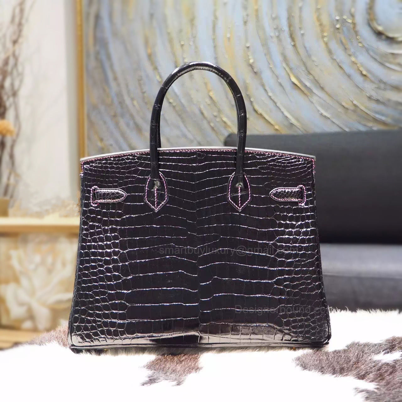 Hand Stitched Hermes Birkin 30 Bag in Bicolored ck89 Noir Shining Porosus Croc GHW