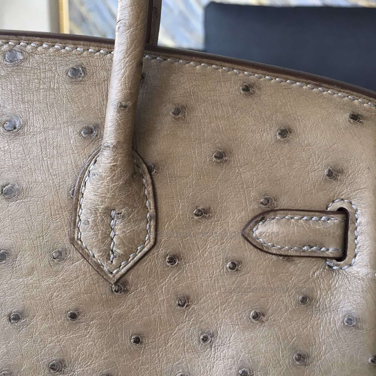 Hand Stitched Hermes Birkin 25 Bag in ck18 Etoupe Ostrich SHW