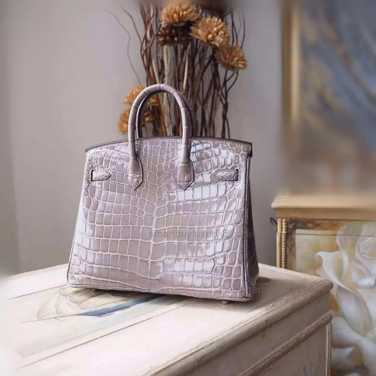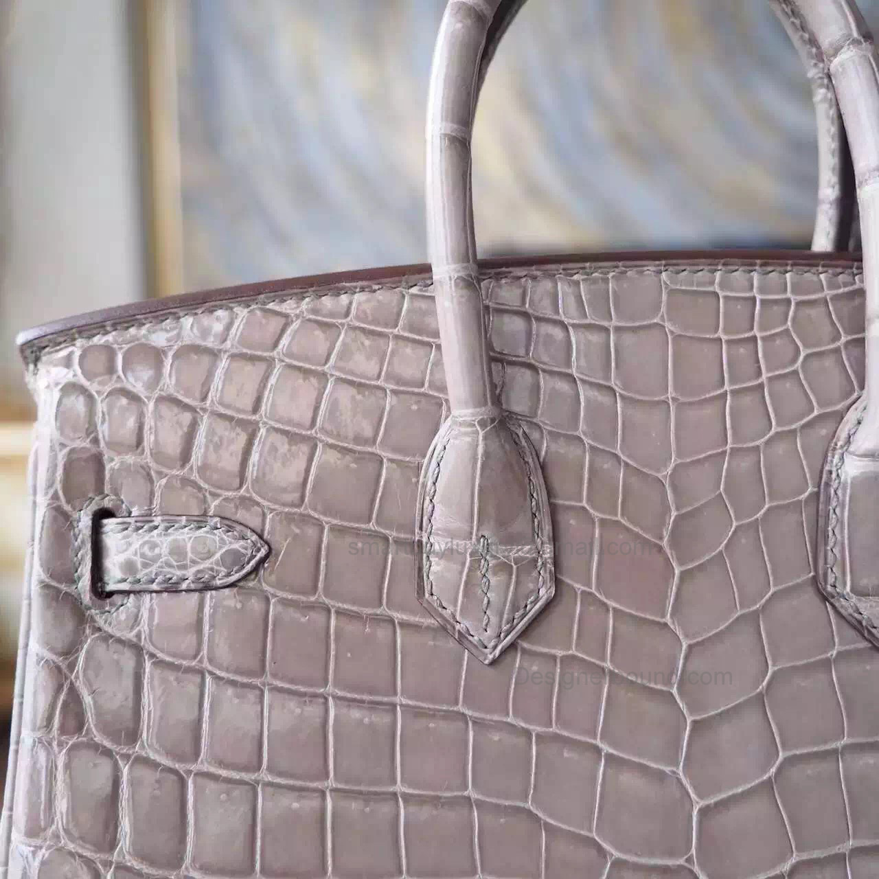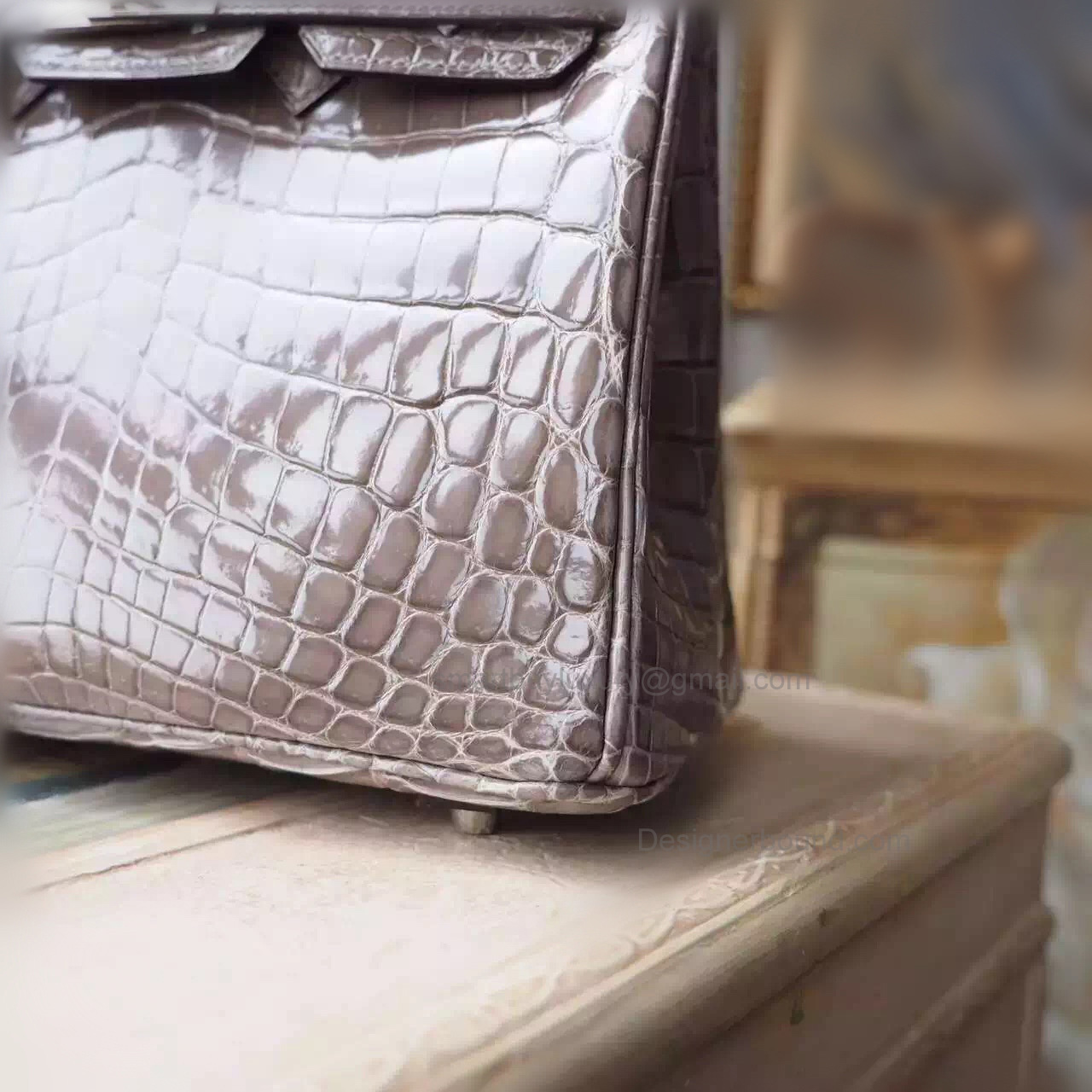 Hand Stitched Hermes Birkin 25 Bag in ck18 Etoupe Shining Niloticus Croc SHW