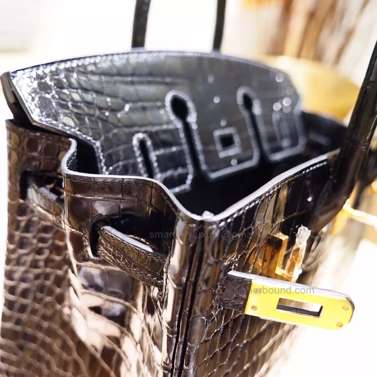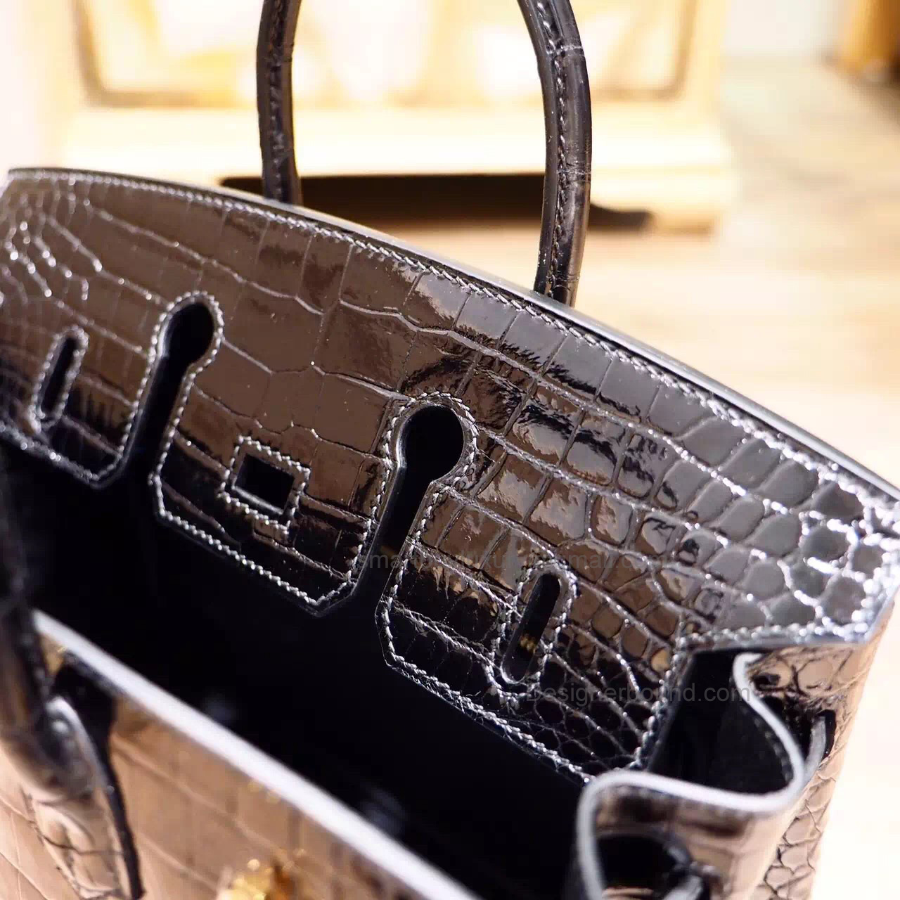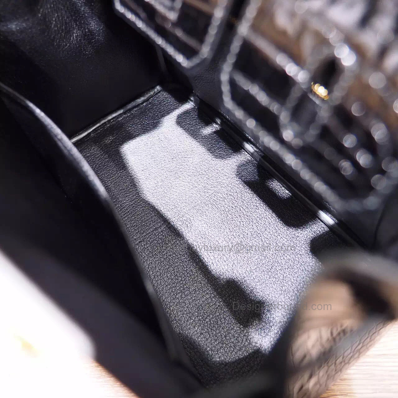 Hand Stitched Hermes Birkin 25 Bag in ck89 Noir Shining Porosus Croc GHW