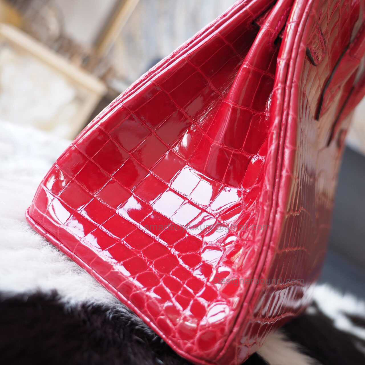 Hand Stitched Hermes Birkin 25 Bag in ck95 Braise Shining Porosus Croc SHW