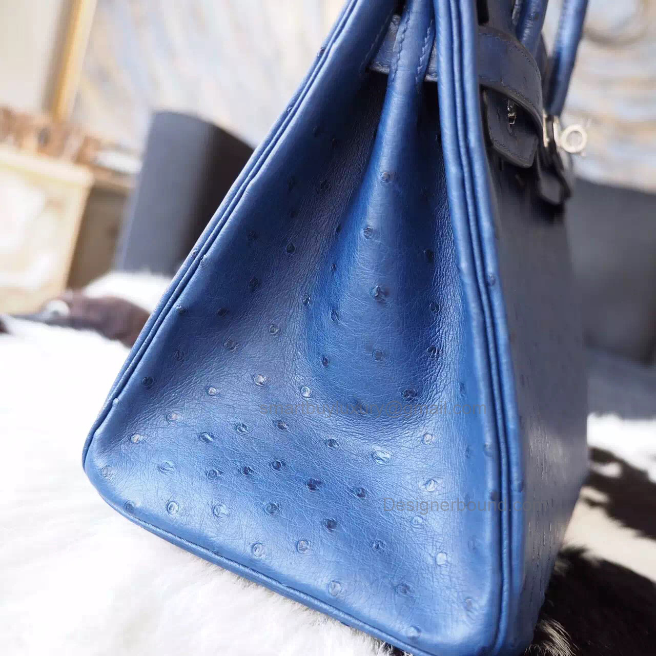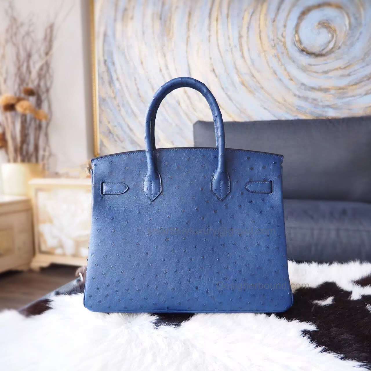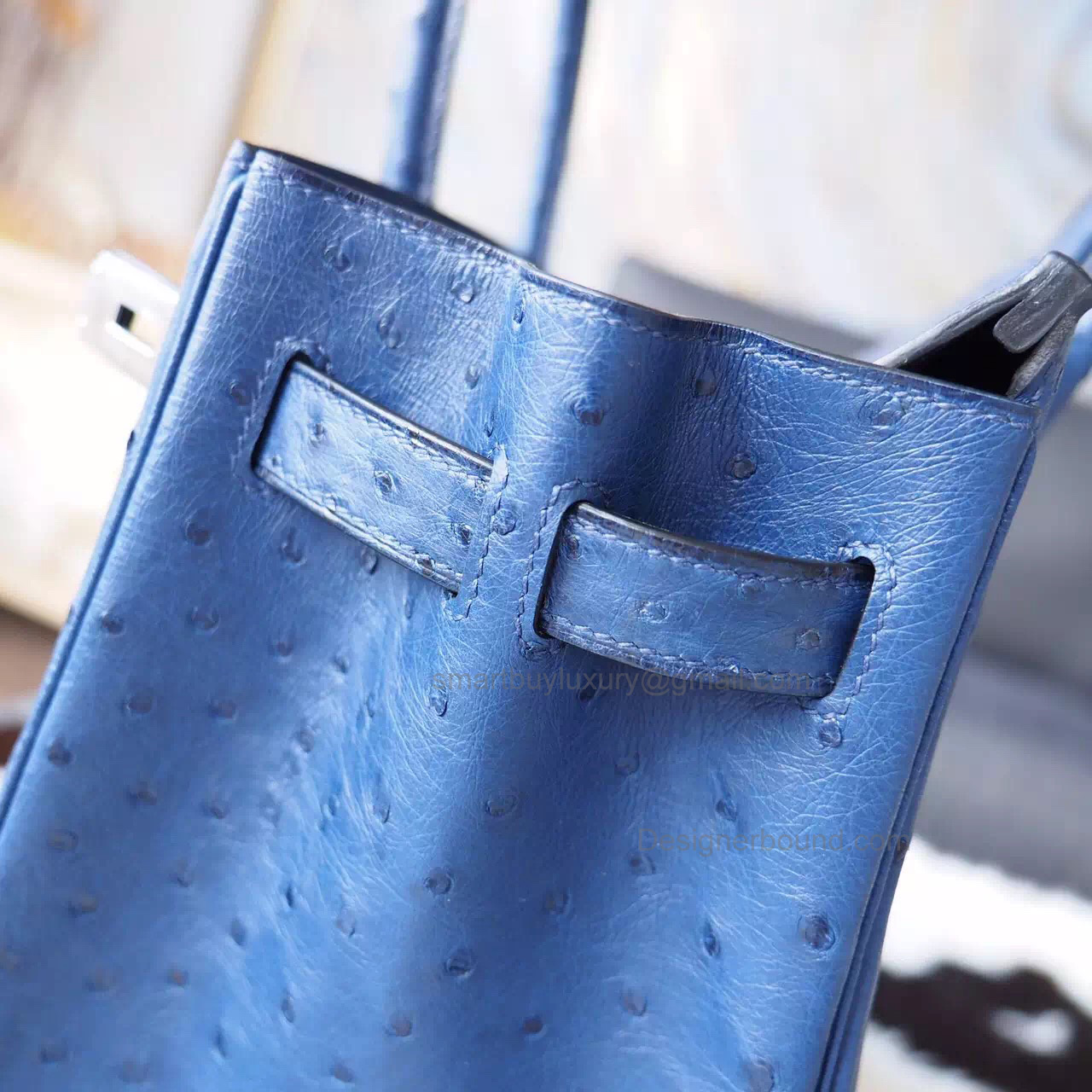 Hand Stitched Hermes Birkin 30 Bag in 7L Blue Malte Ostrich SHW