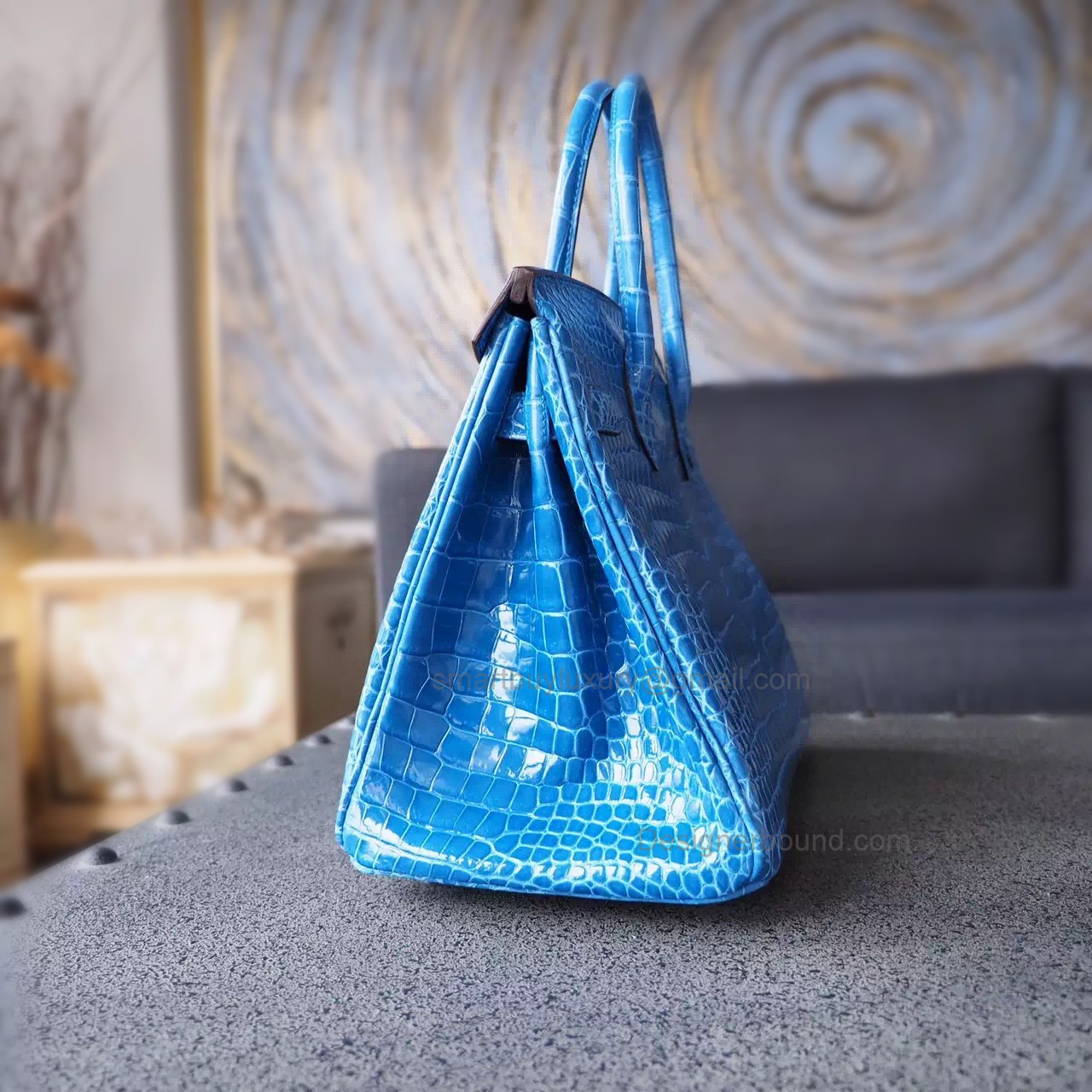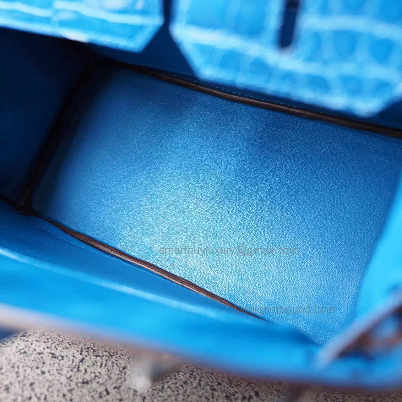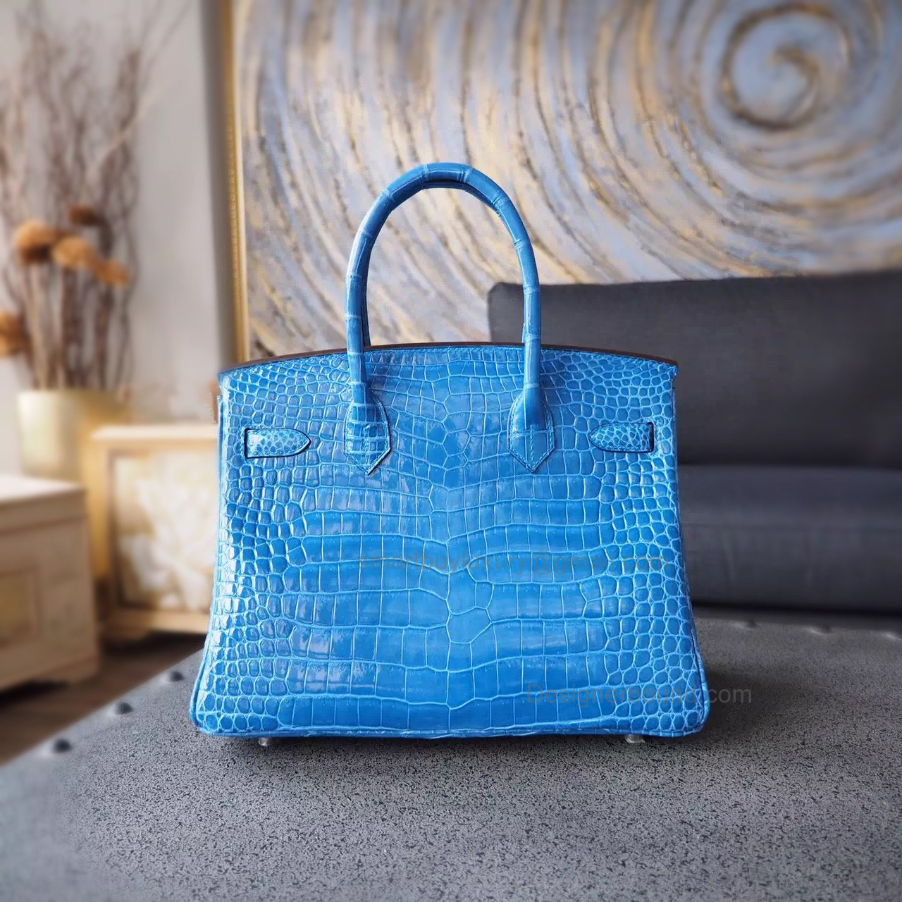 Hand Stitched Hermes Birkin 30 Bag in 7q Mykonos Shining Porosus Croc SHW