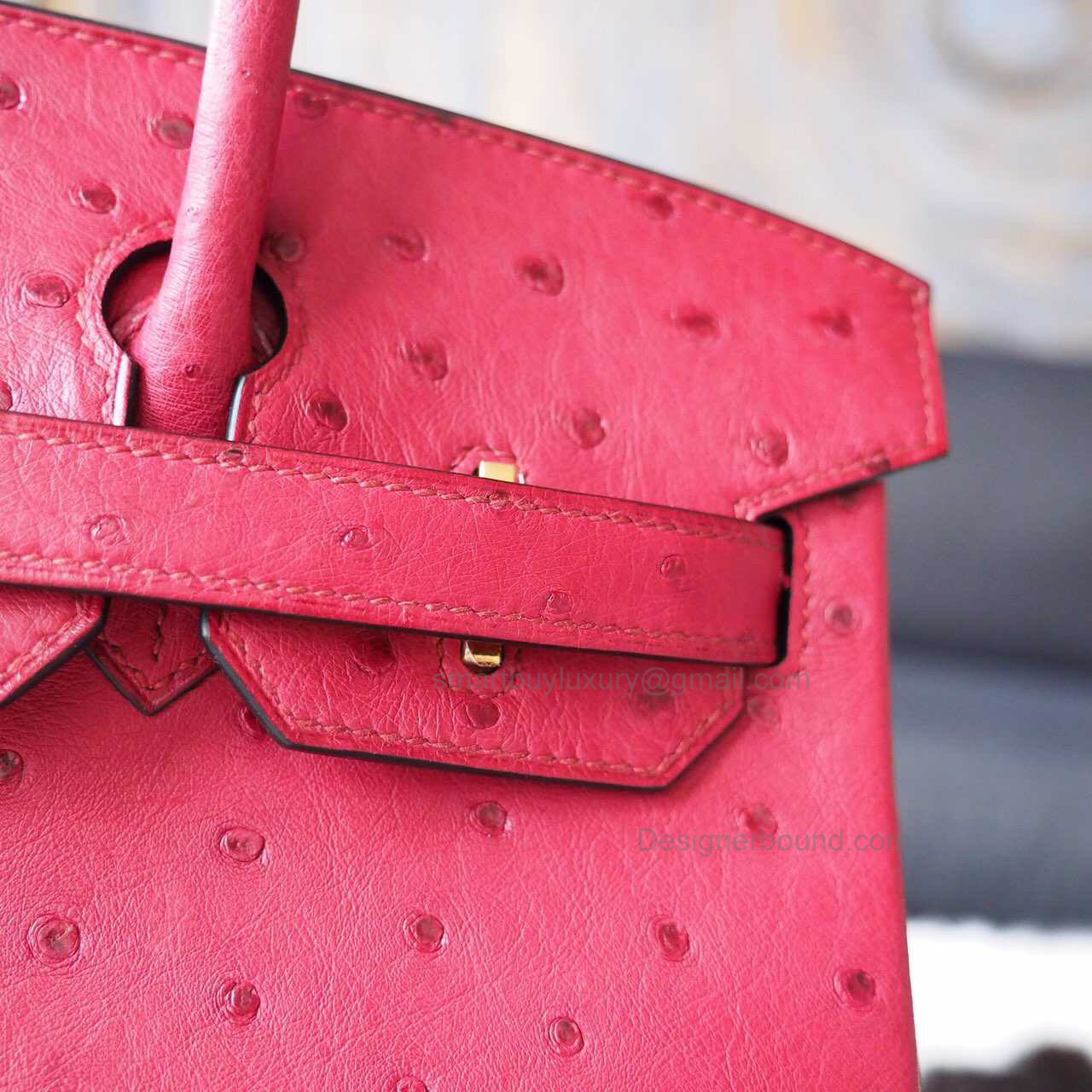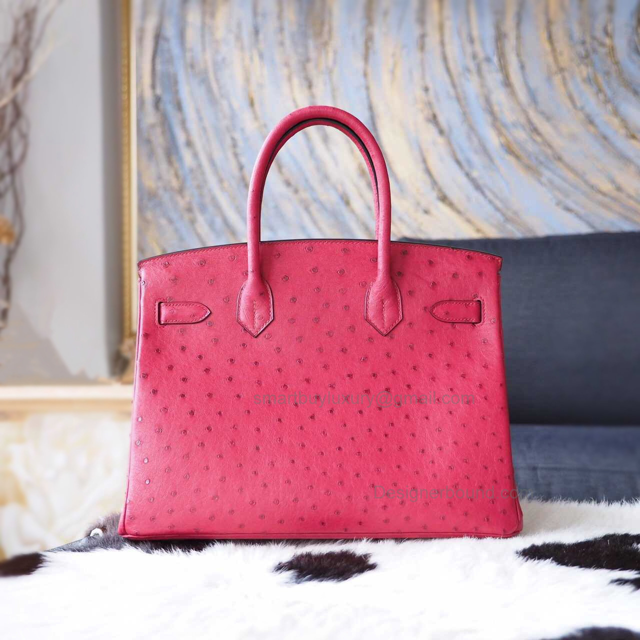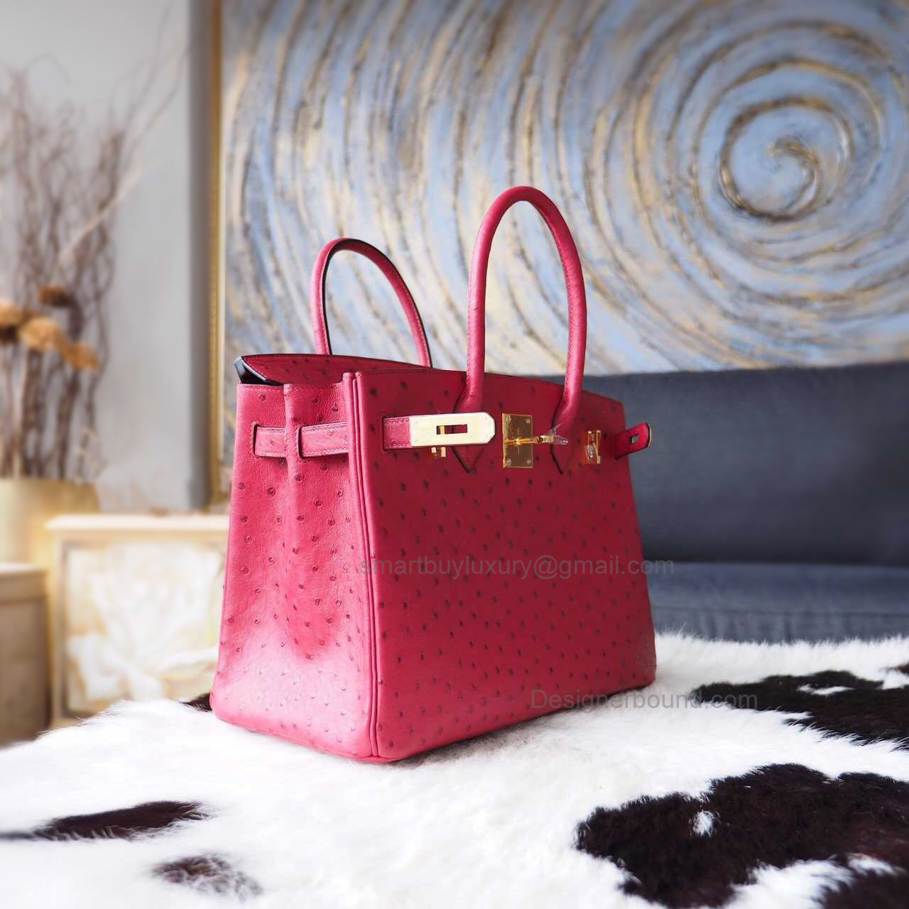 Hand Stitched Hermes Birkin 30 Bag in b5 Ruby Ostrich GHW