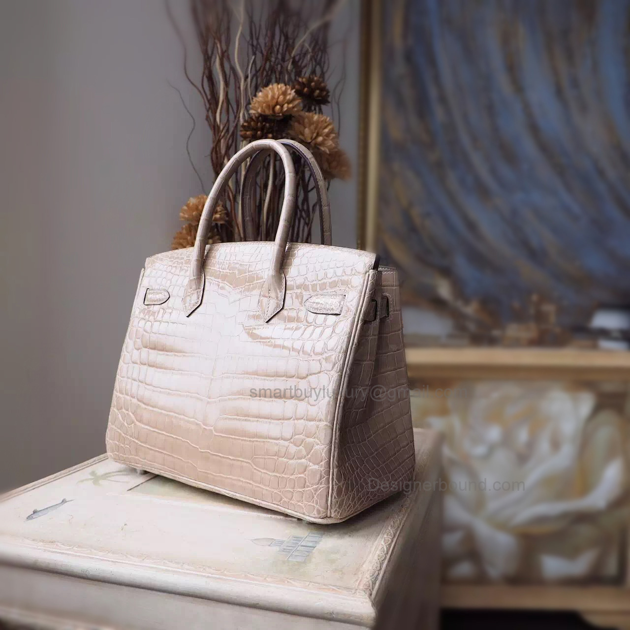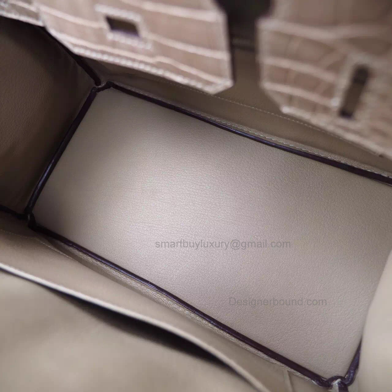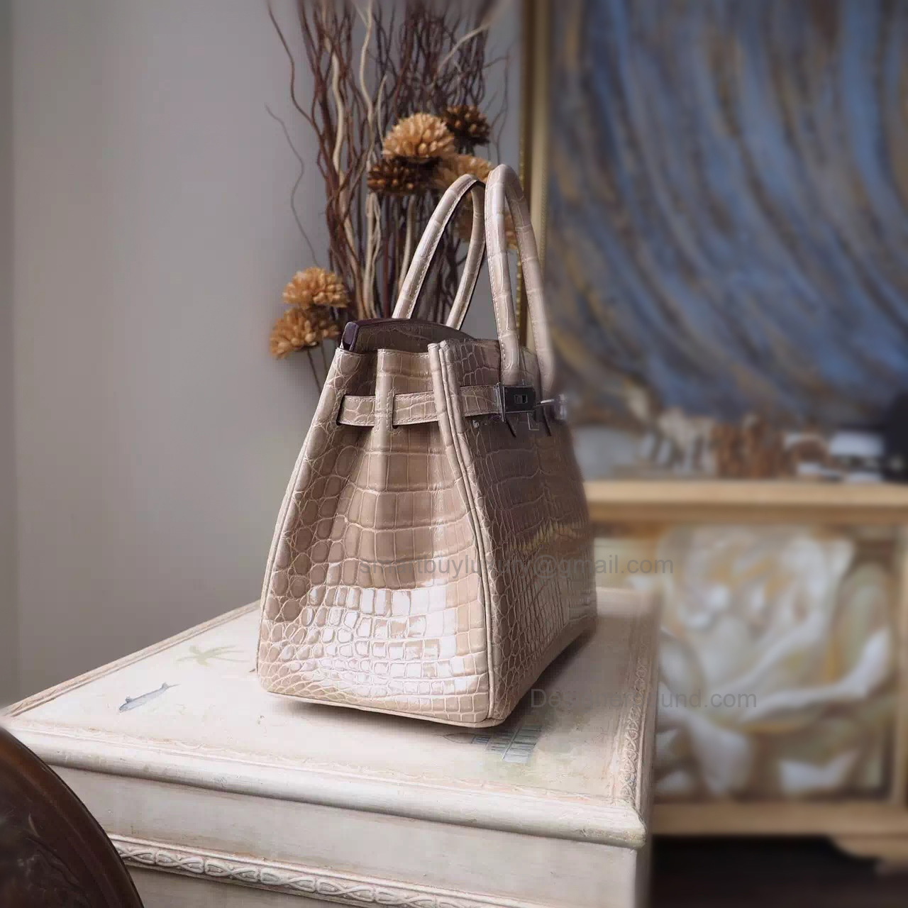 Hand Stitched Hermes Birkin 30 Bag in cc14 Beige Shining Porosus Croc SHW