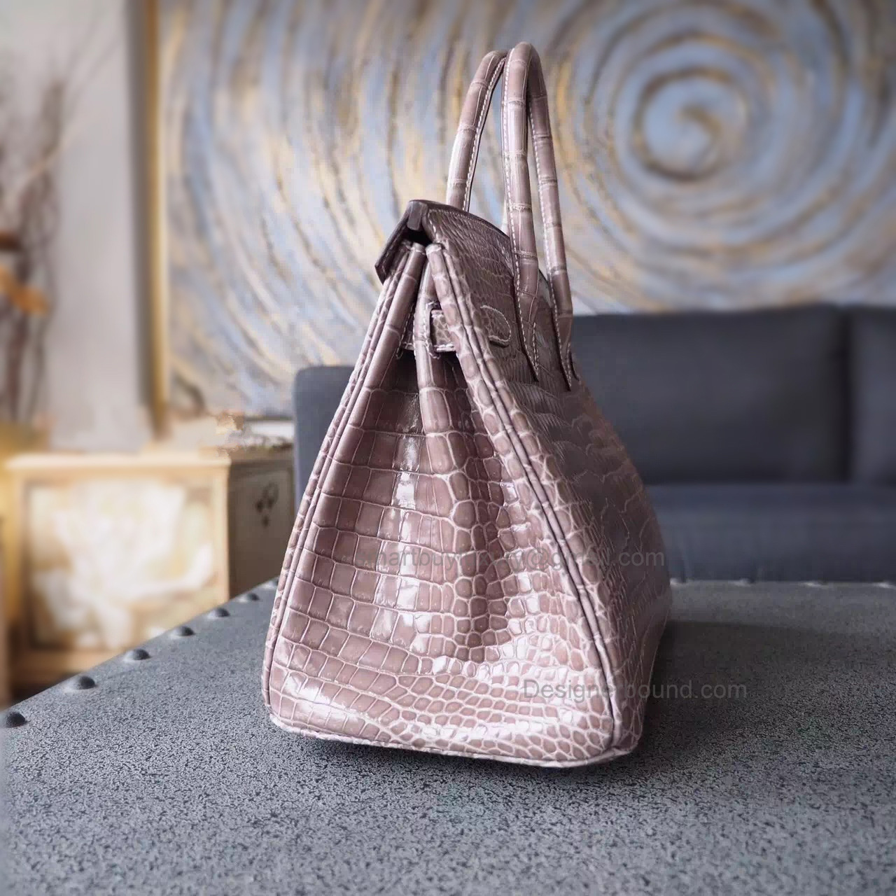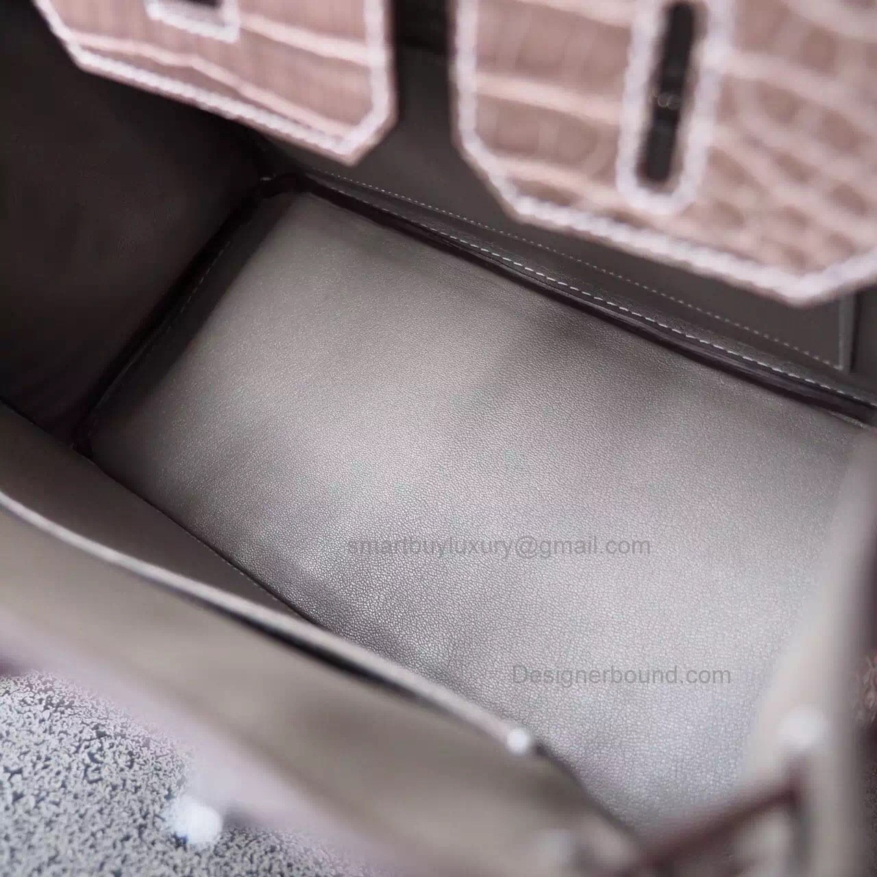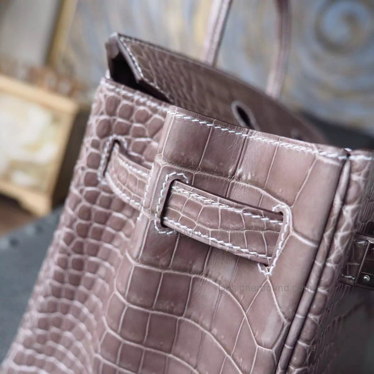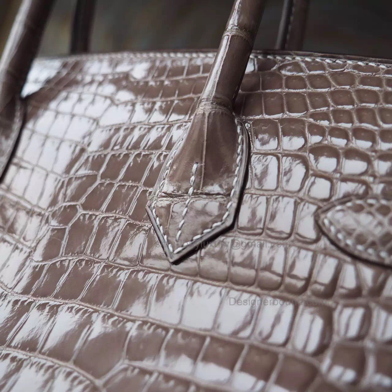 Hand Stitched Hermes Birkin 30 Bag in ck18 Etoupe Shining Porosus Croc SHW