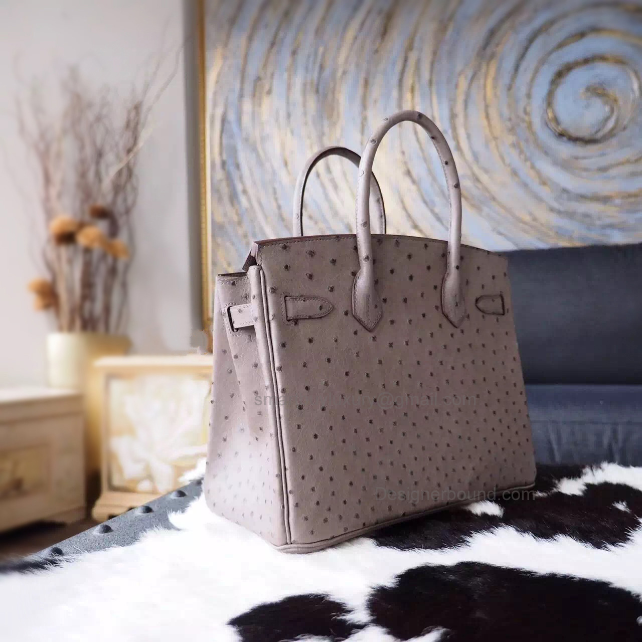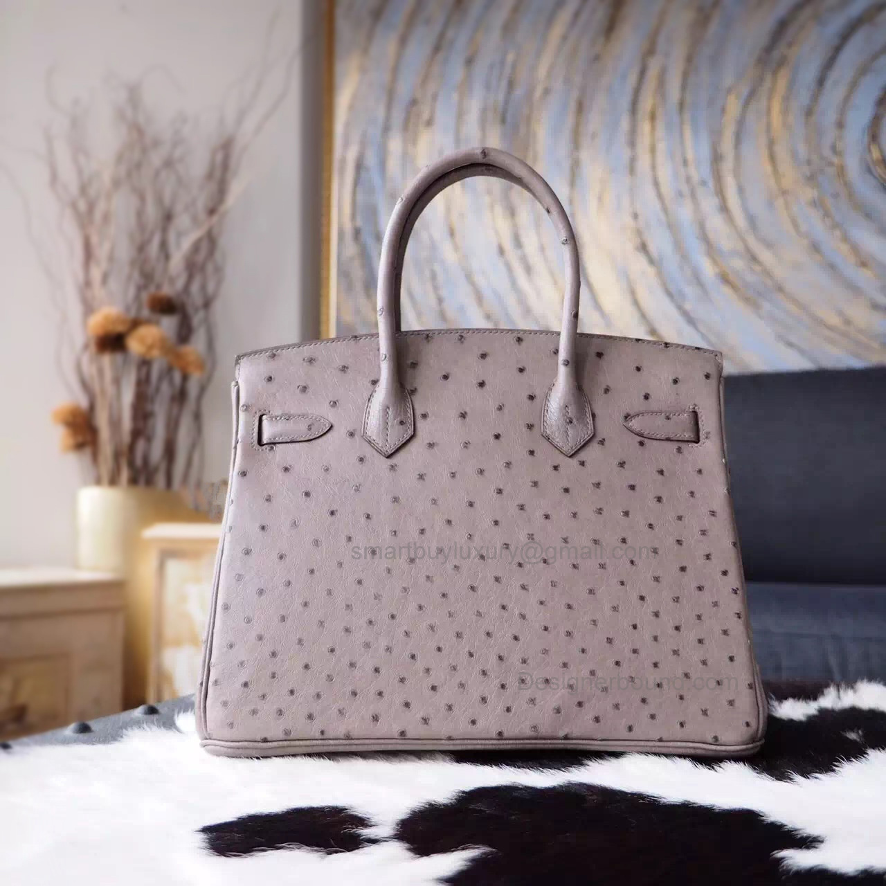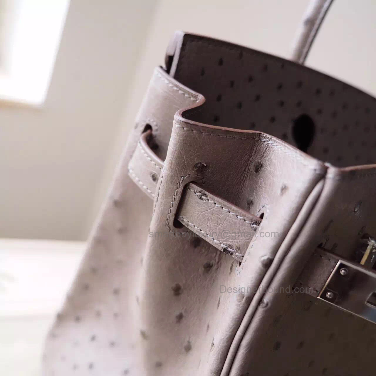 Hand Stitched Hermes Birkin 30 Bag in ck81 Gris Tourterelle Ostrich SHW