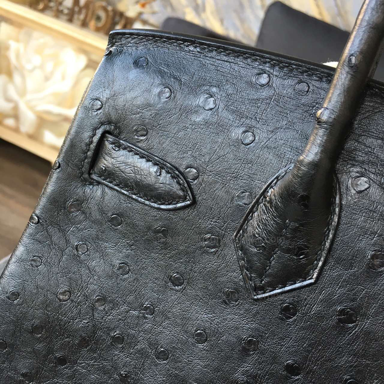Hand Stitched Hermes Birkin 30 Bag in ck89 Noir Ostrich GHW