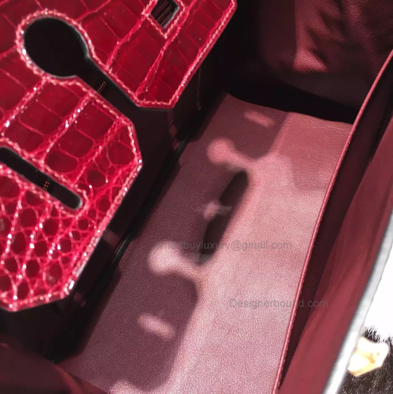 Hand Stitched Hermes Birkin 35 Bag in ck57 Bordeaux Shining Porosus Croc GHW