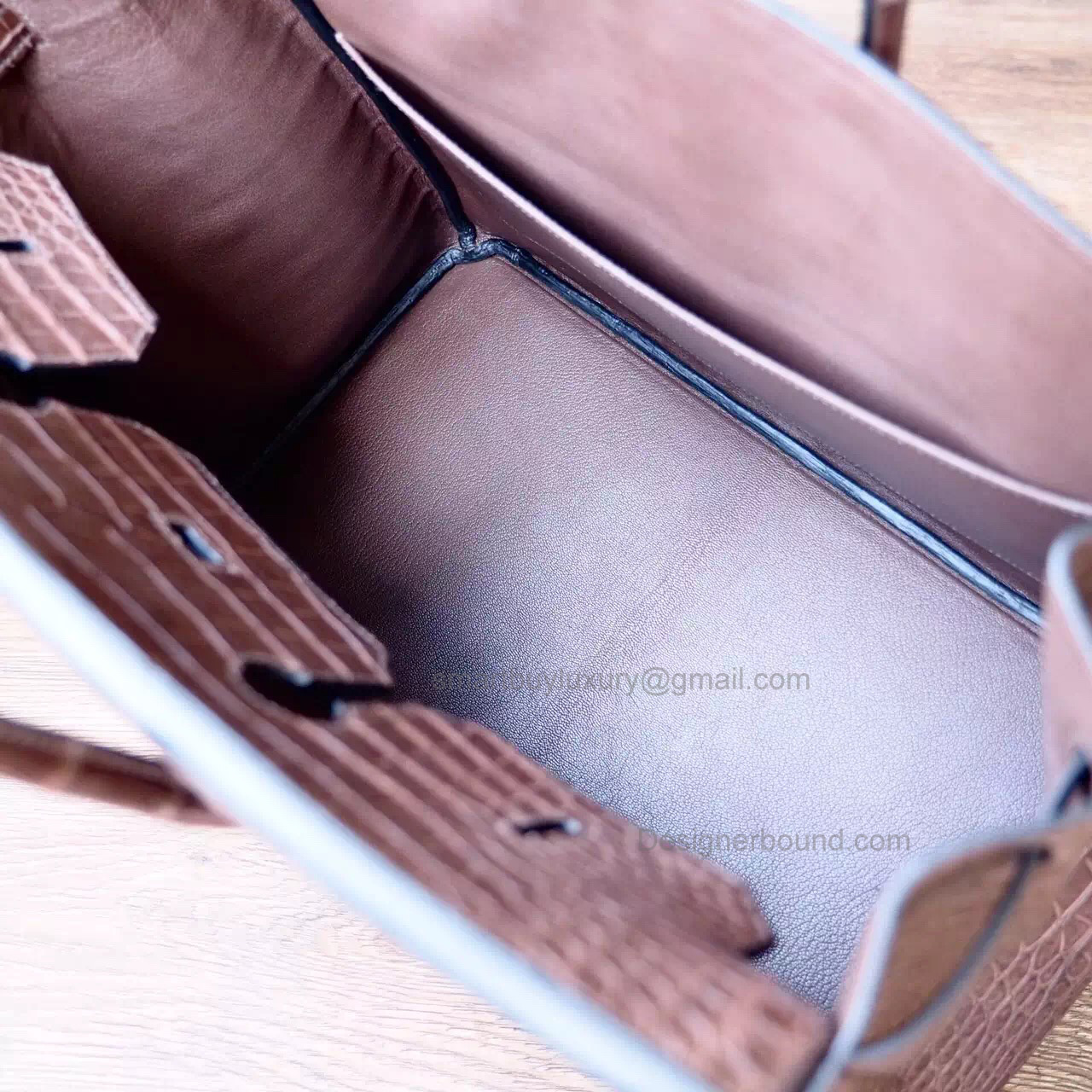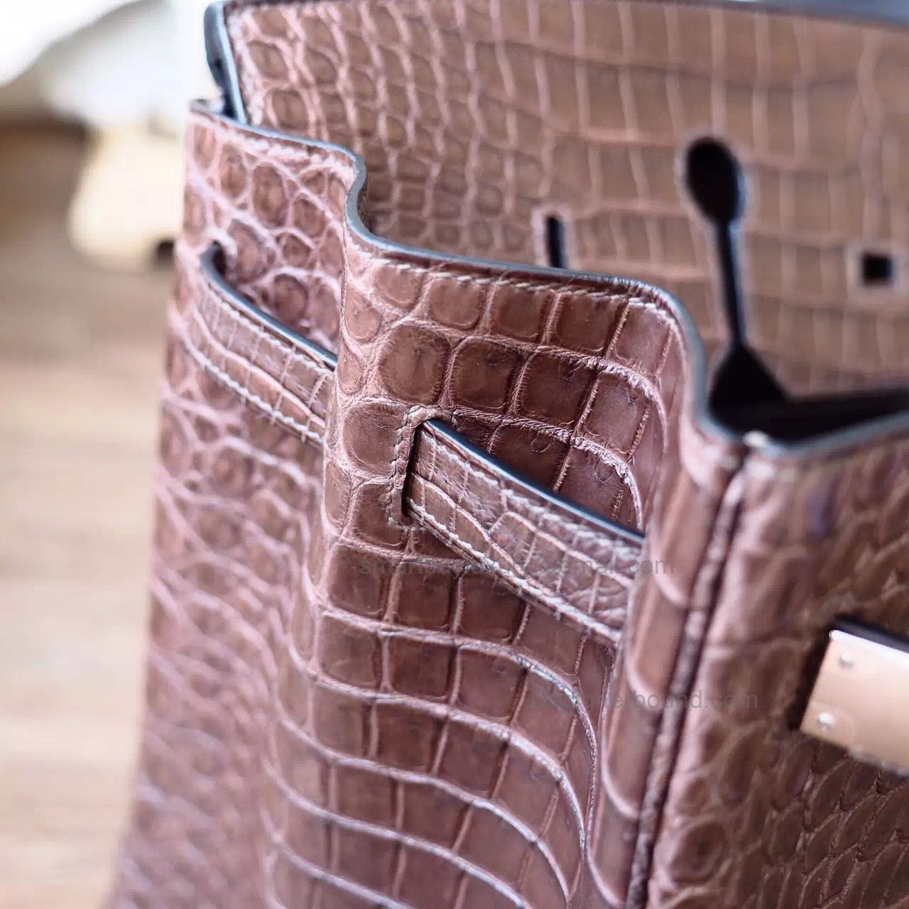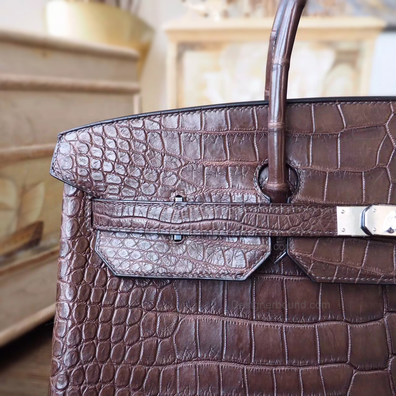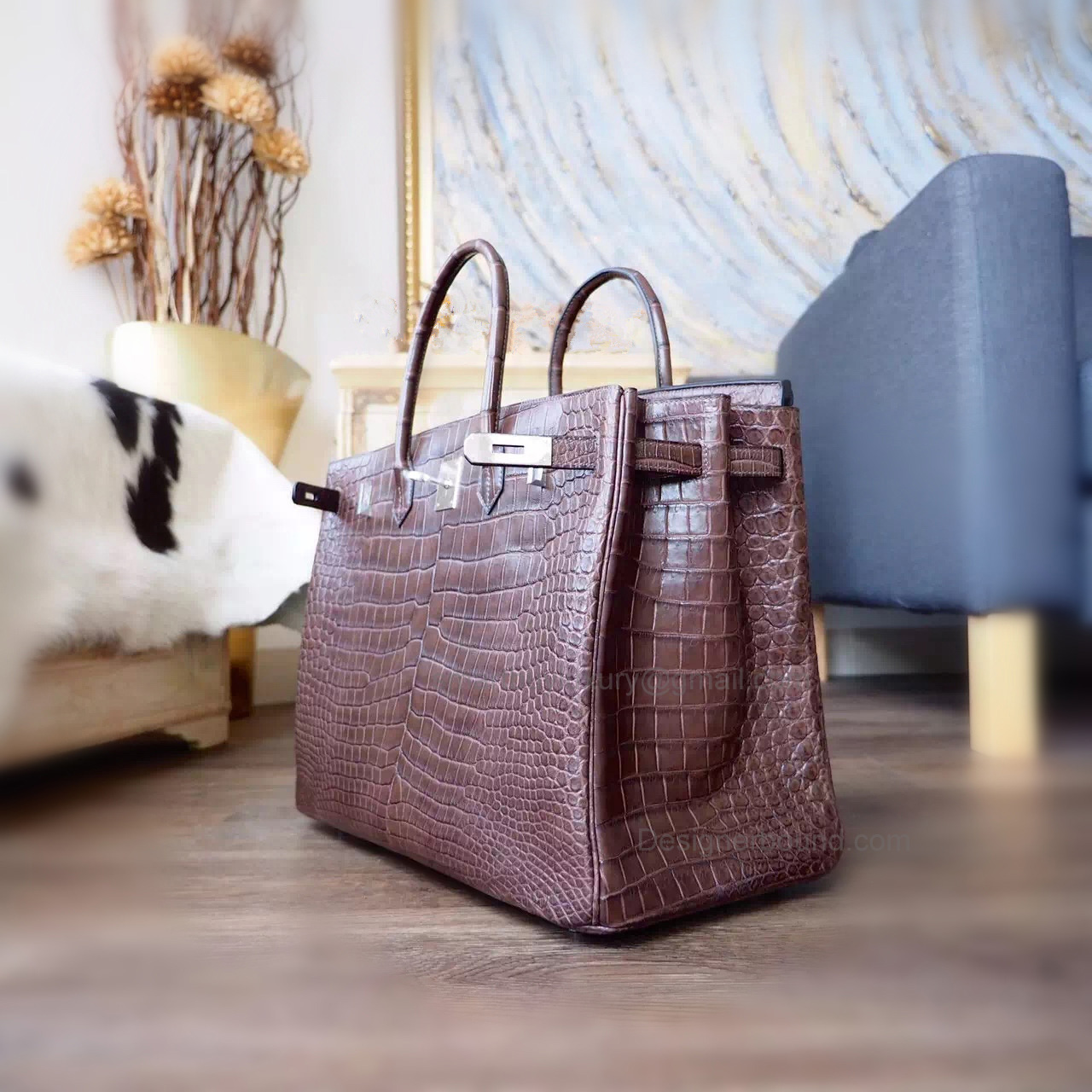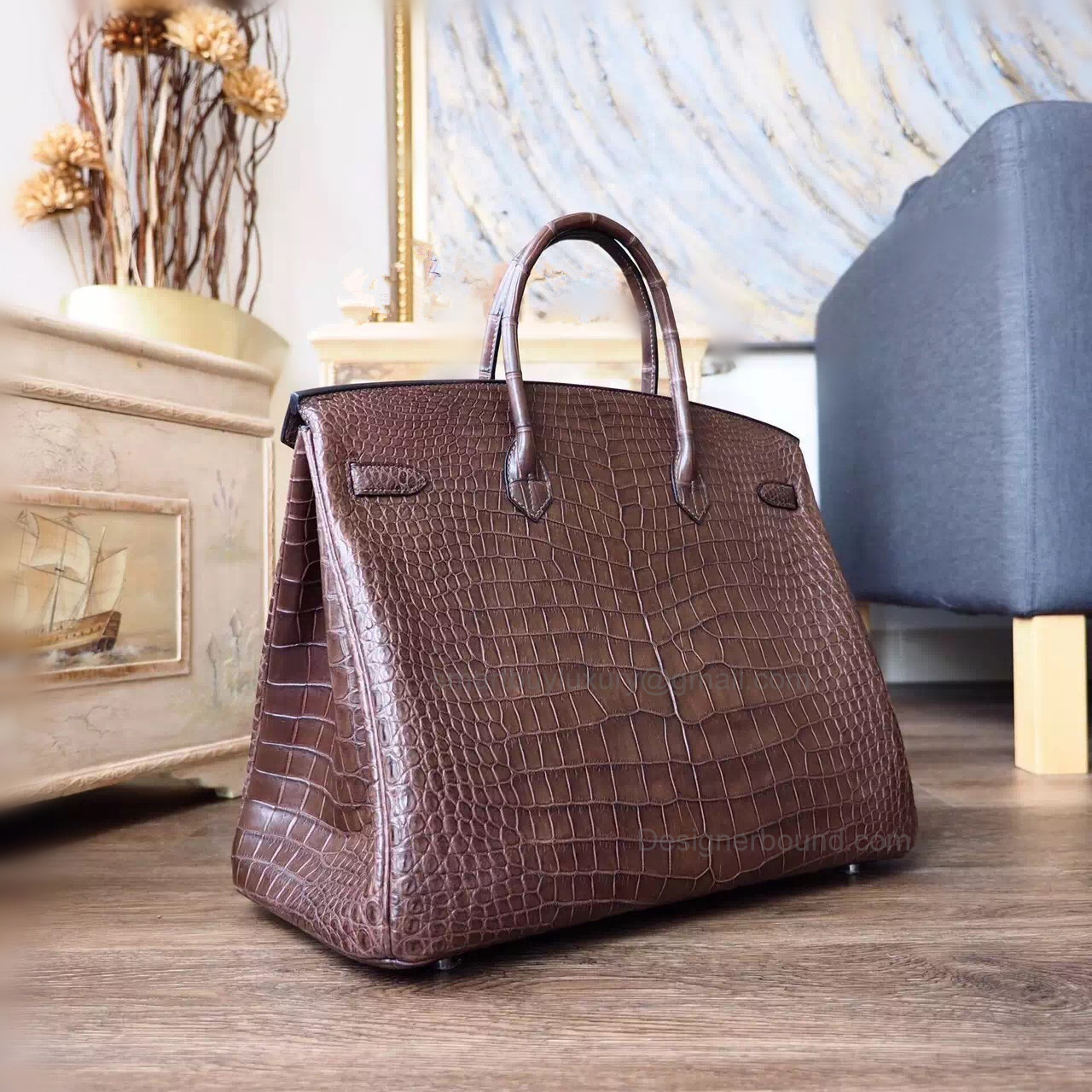 Hand Stitched Hermes Birkin 40 Bag in ck47 Chocolat Matte Porosus Croc