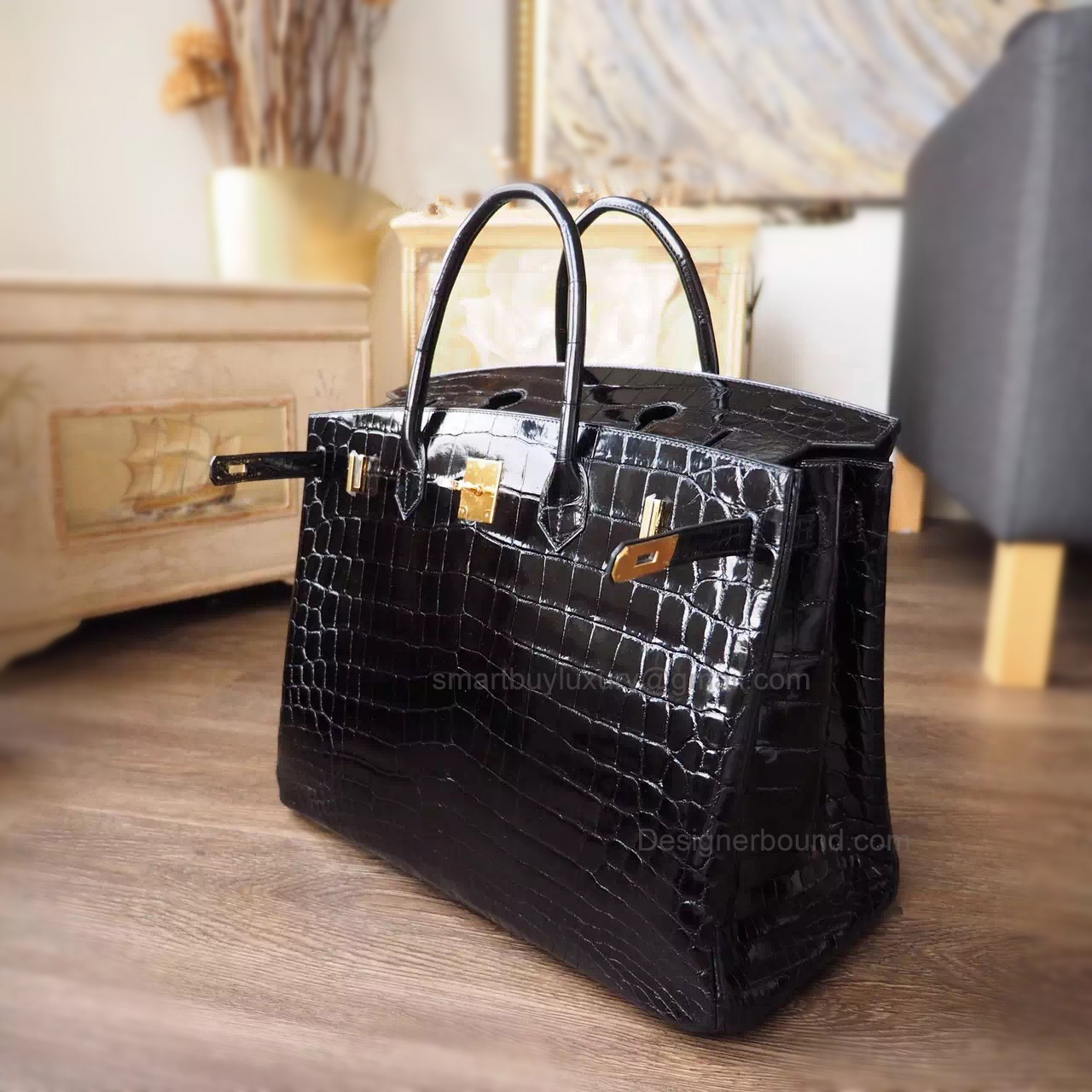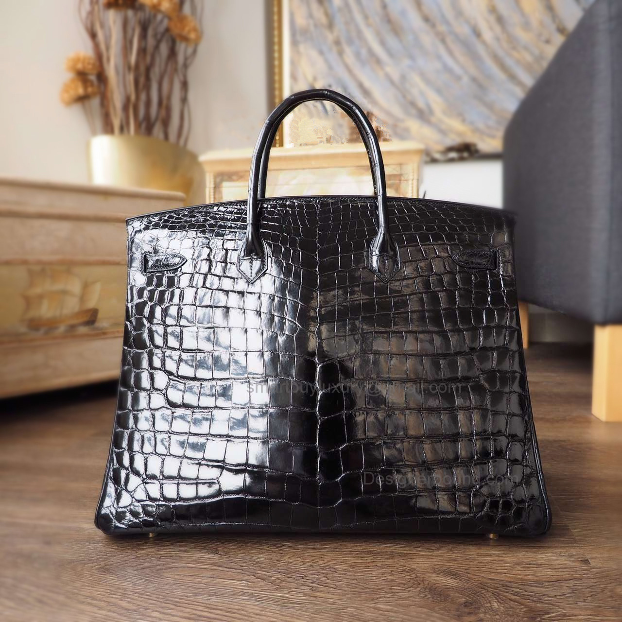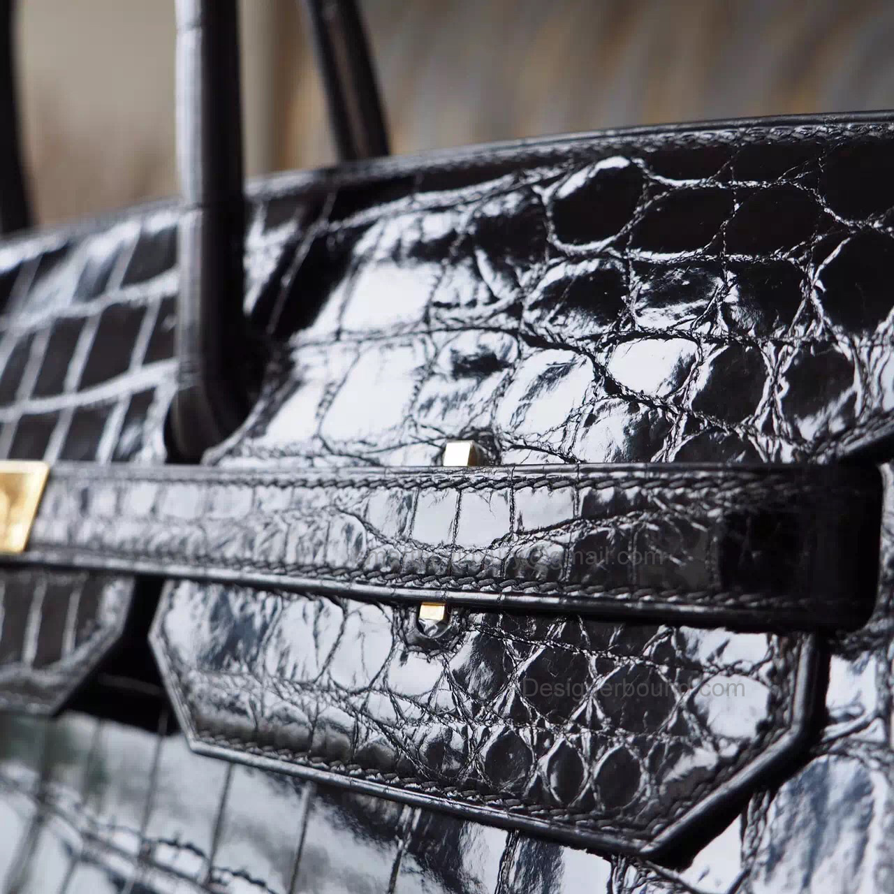 Hand Stitched Hermes Birkin 40 Bag in ck89 Noir Shining Niloticus Croc GHW