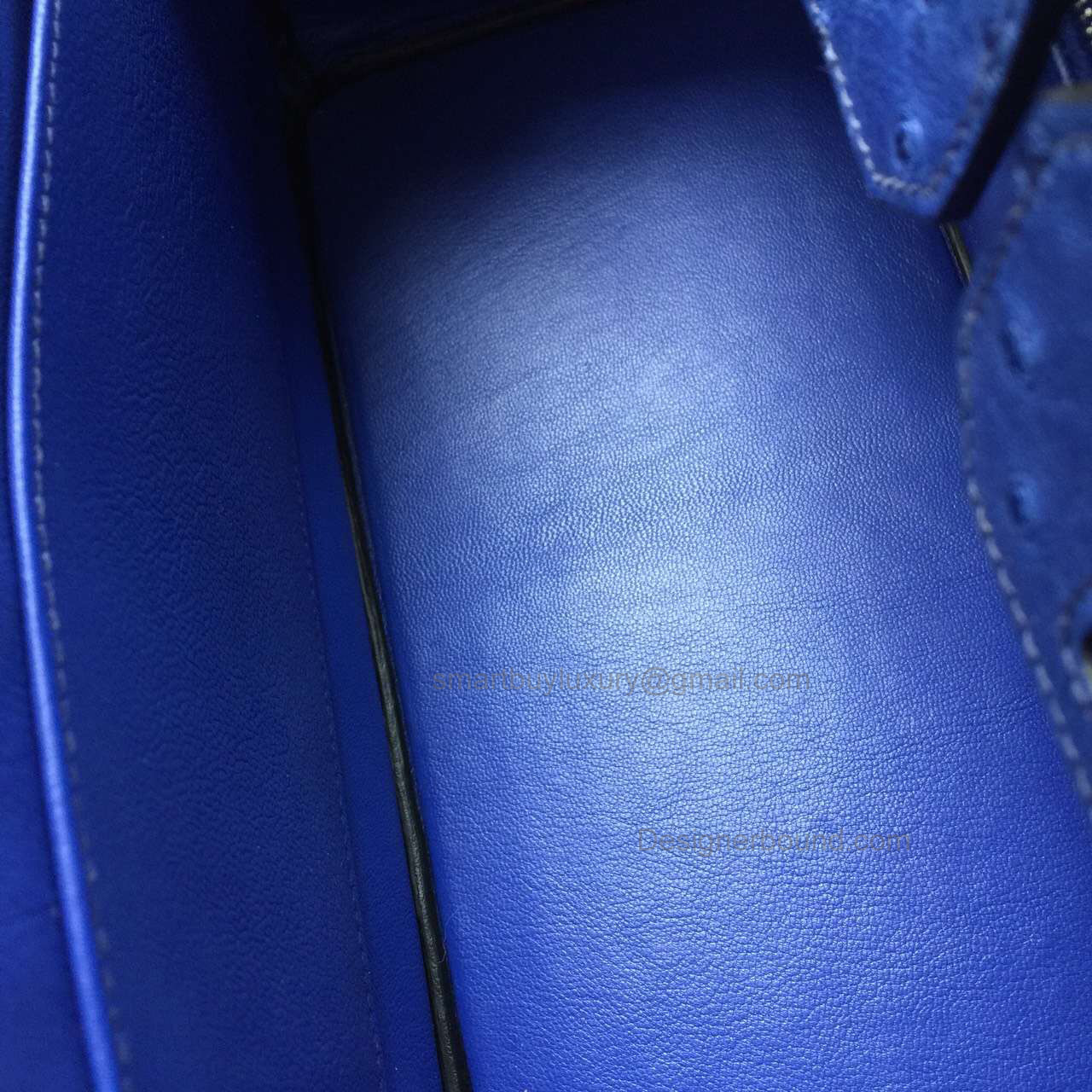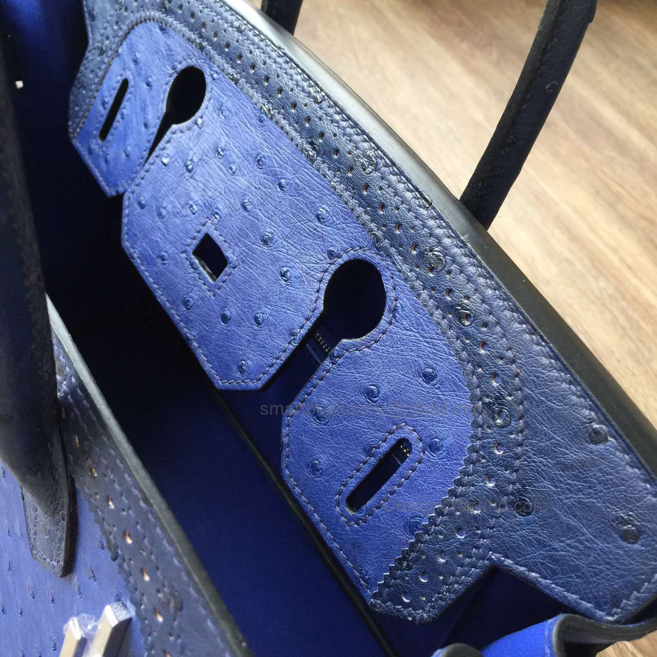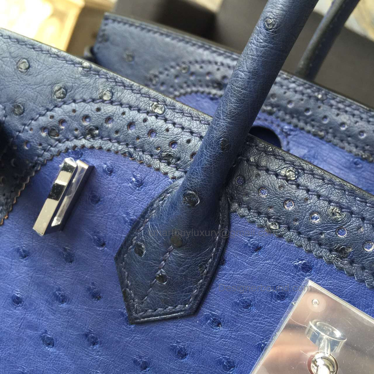 Hand Stitched Hermes Birkin 30 Ghillies Bag in Multicolored ck73 Blue Saphir Ostrich SHW
