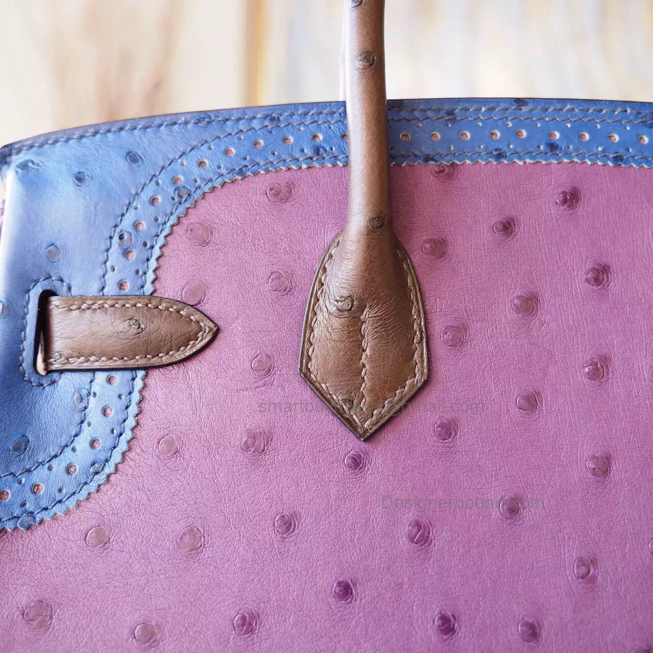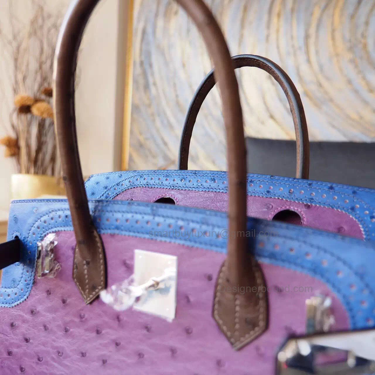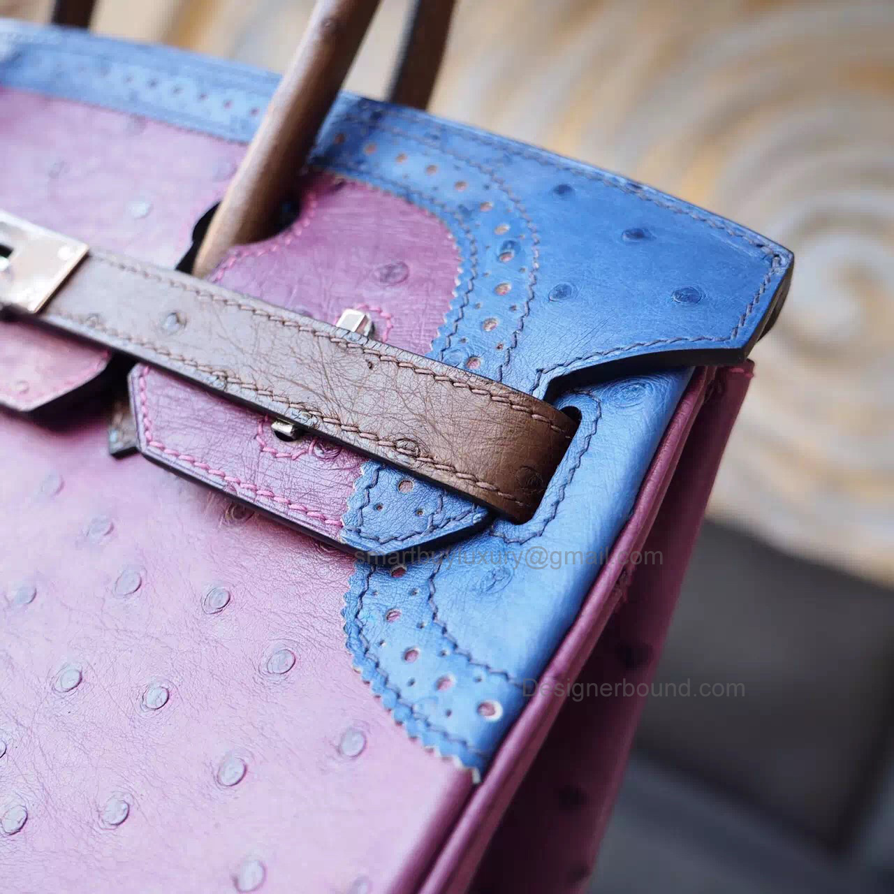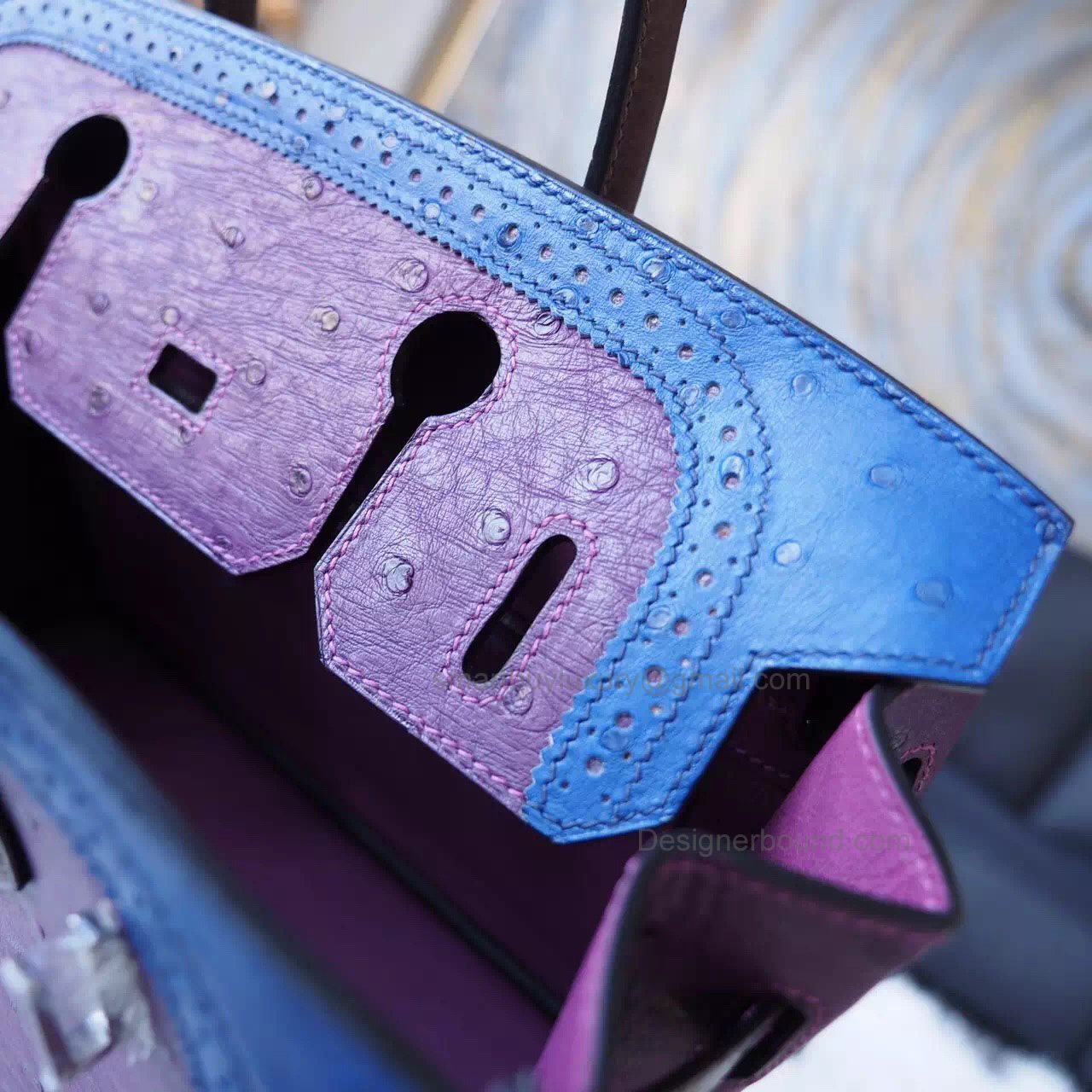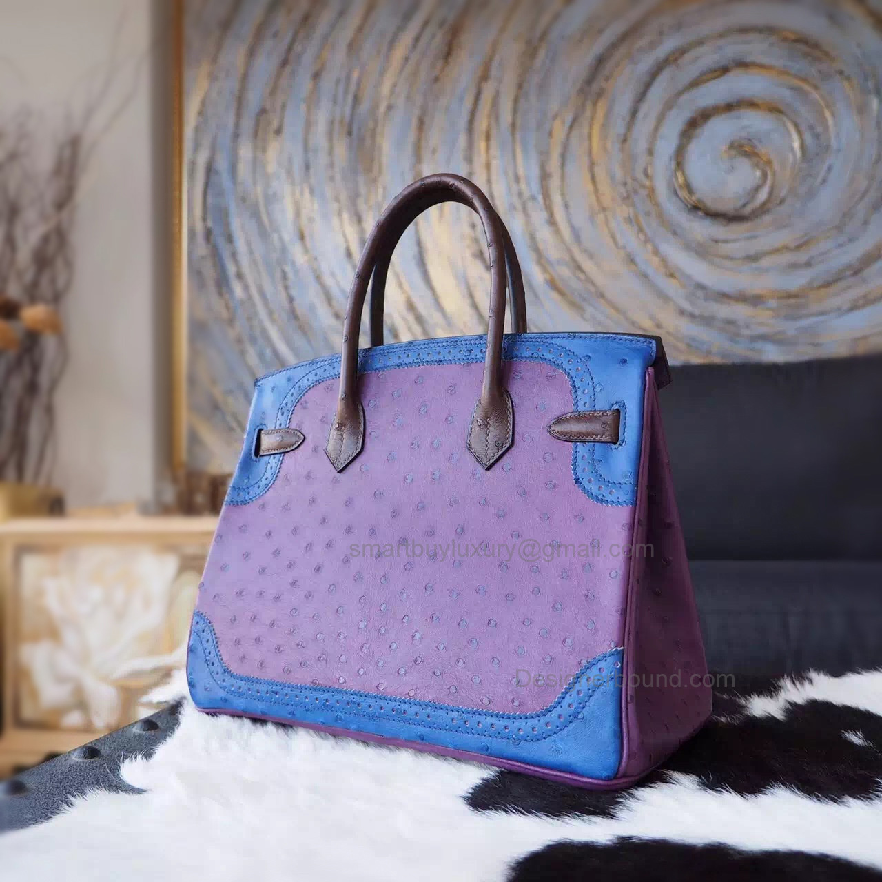 Hand Stitched Hermes Birkin 30 Ghillies Bag in Multicolored 5c Violet Ostrich SHW