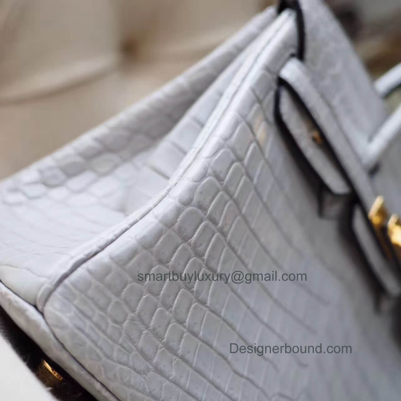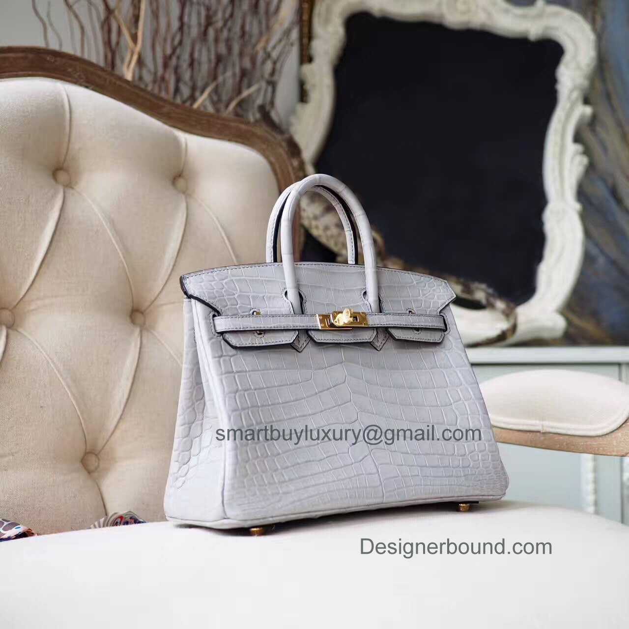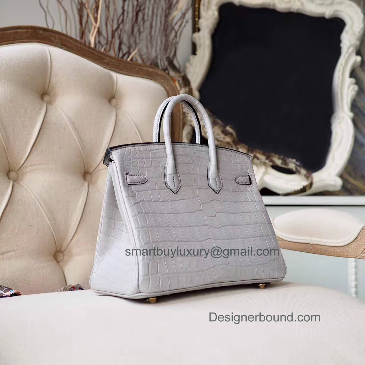 Home  >  SHOP BY DESIGNERS  >  HERMES EXOTIC > Hermes Birkin 25 Bag in ck80 Pearl Grey Matte Nile Croc GHW