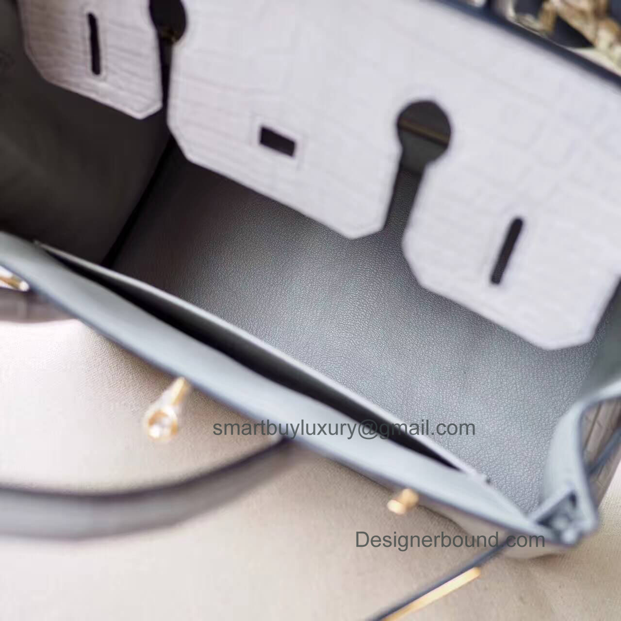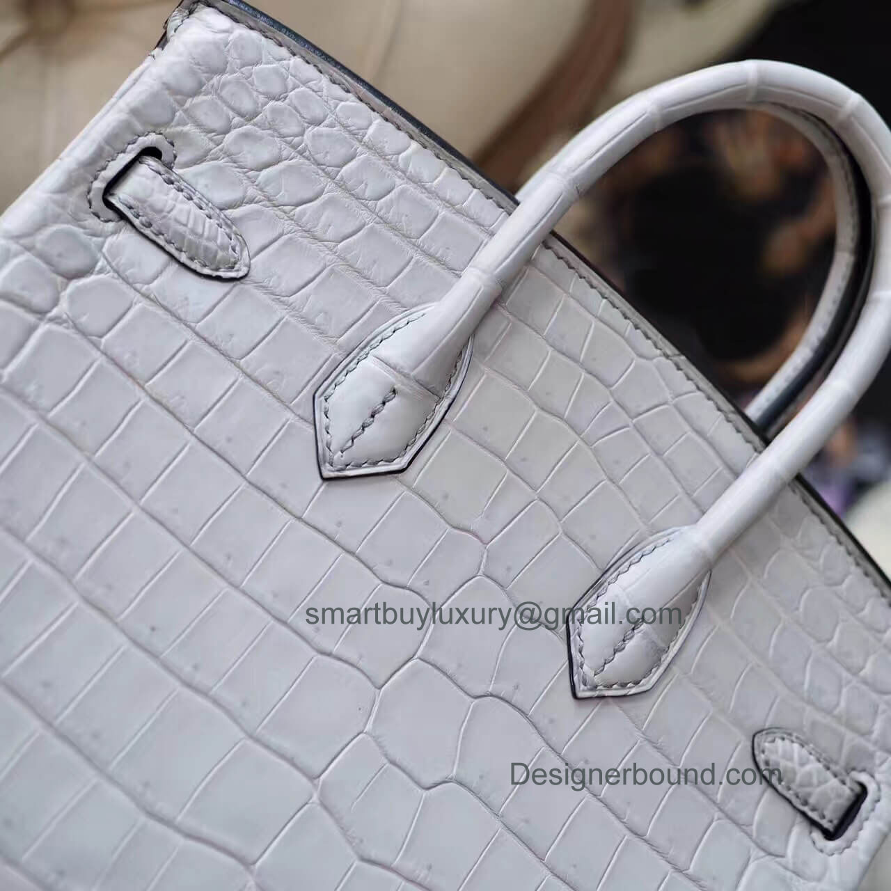 HERMES BIRKIN 25 BAG IN CK80 PEARL GREY MATTE NILE CROC GHW