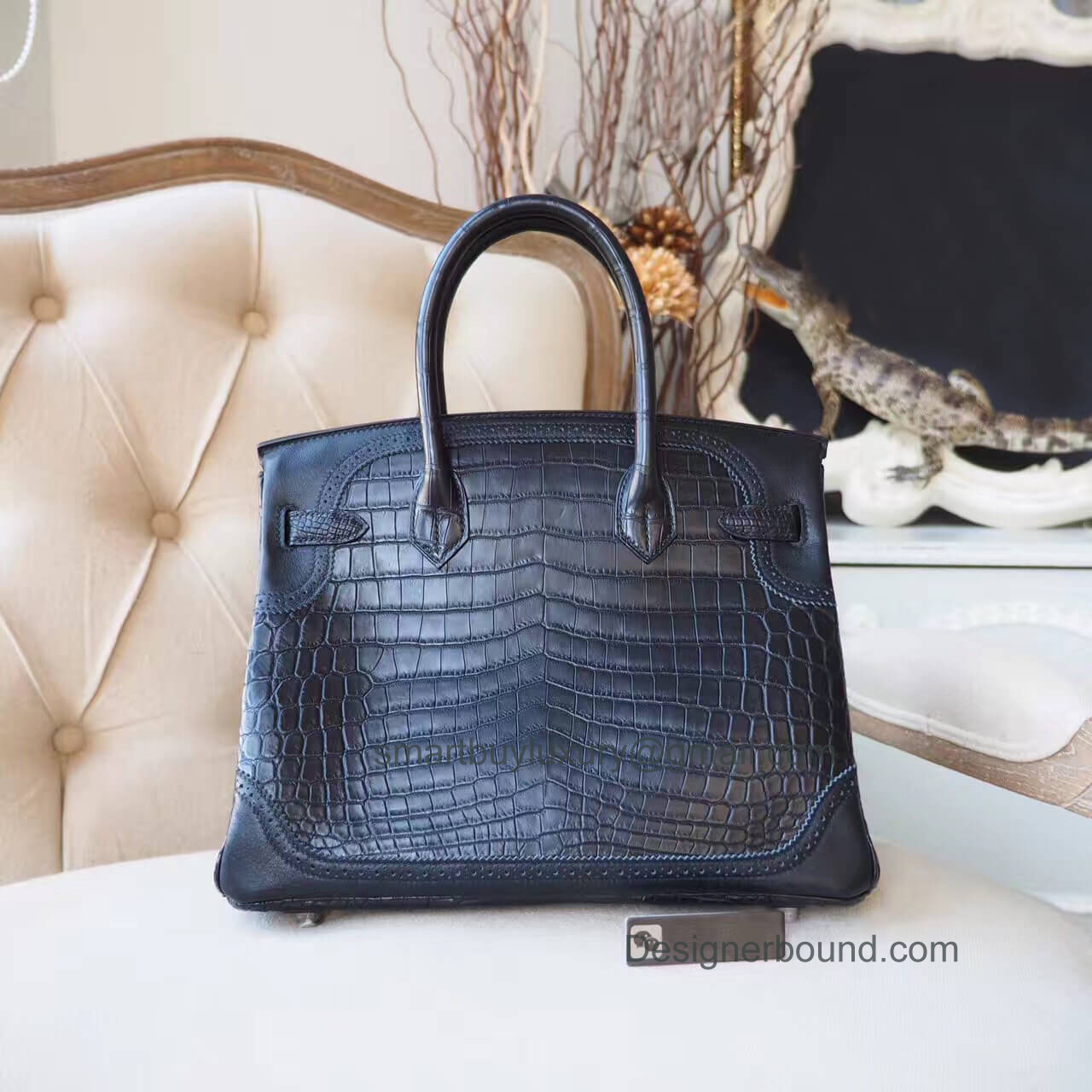 Home  >  SHOP BY DESIGNERS  >  HERMES EXOTIC > Hermes Birkin 30 Bag Ghillies in ck89 Matte Nile Croc PHW