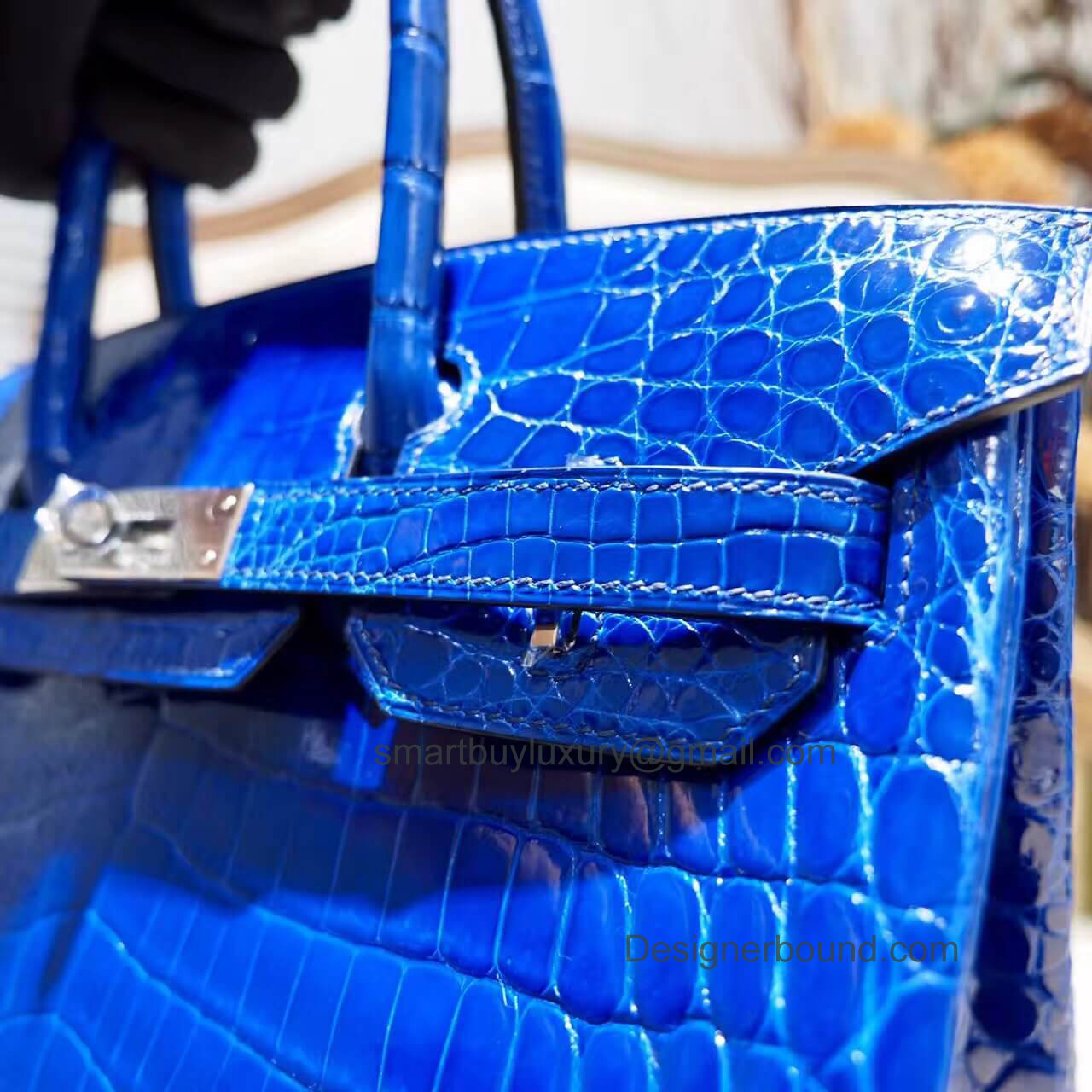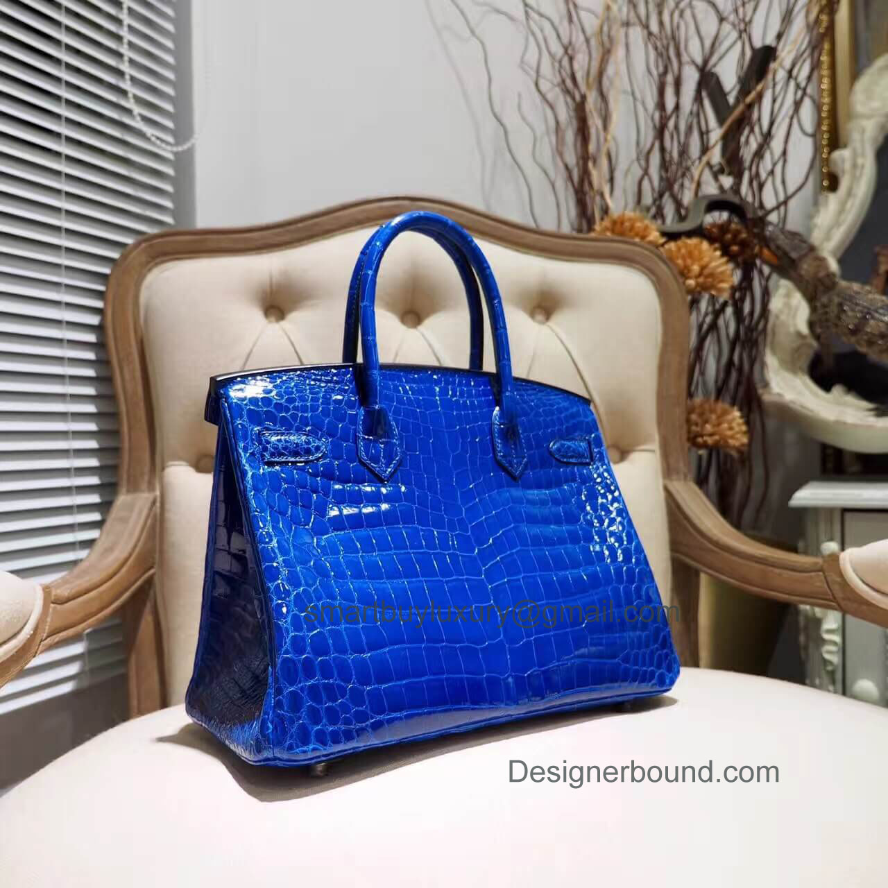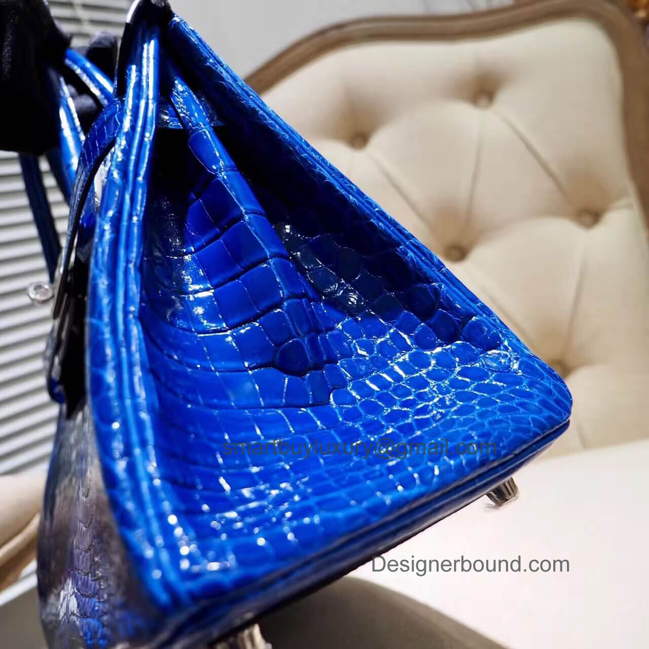 Home  >  SHOP BY DESIGNERS  >  HERMES EXOTIC > Hermes Birkin 30 Bag in 7t Blue Electric Shiny Nile Croc PHW