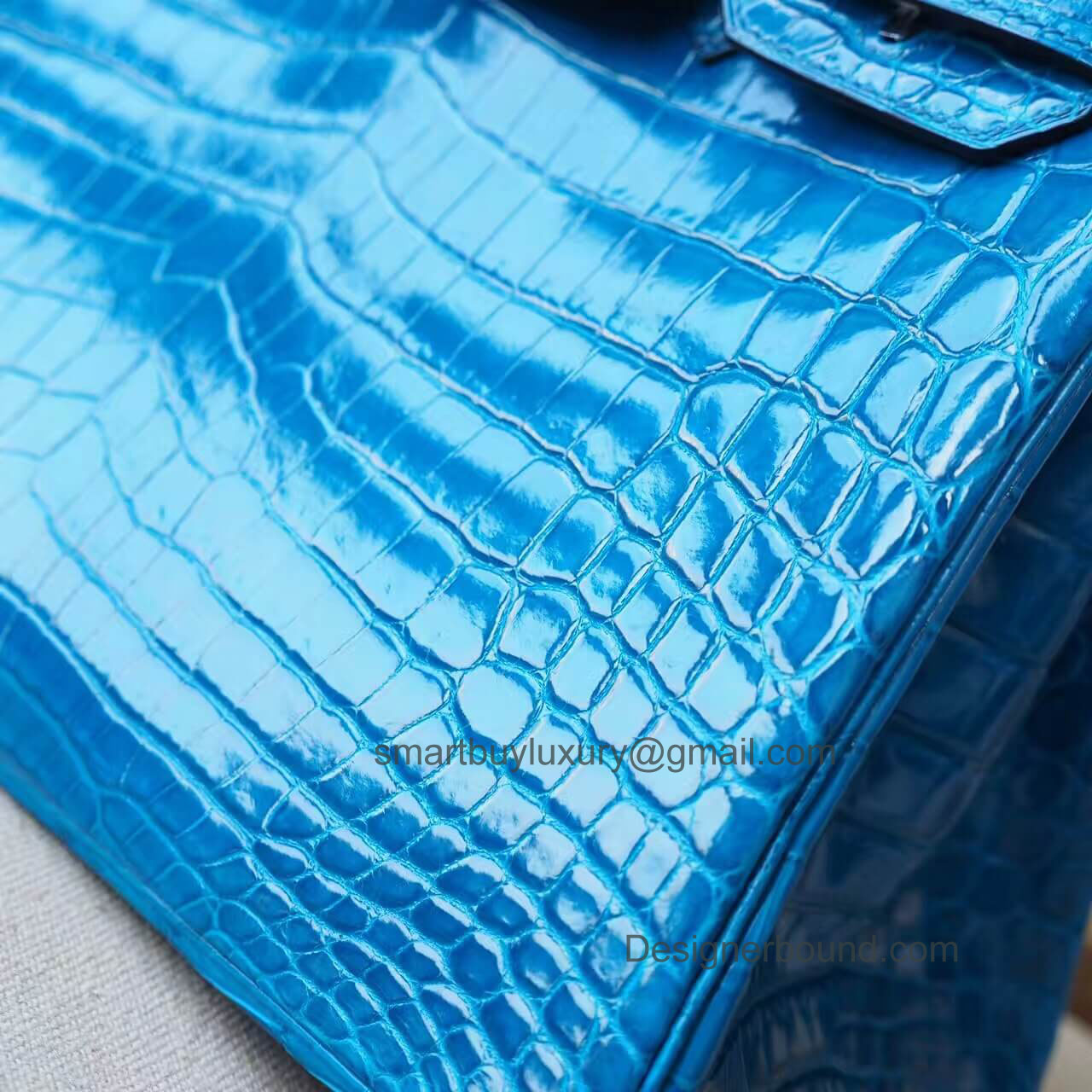HERMES BIRKIN 30 BAG IN 7W BLUE IZMIR SHINY NILE CROC GHW