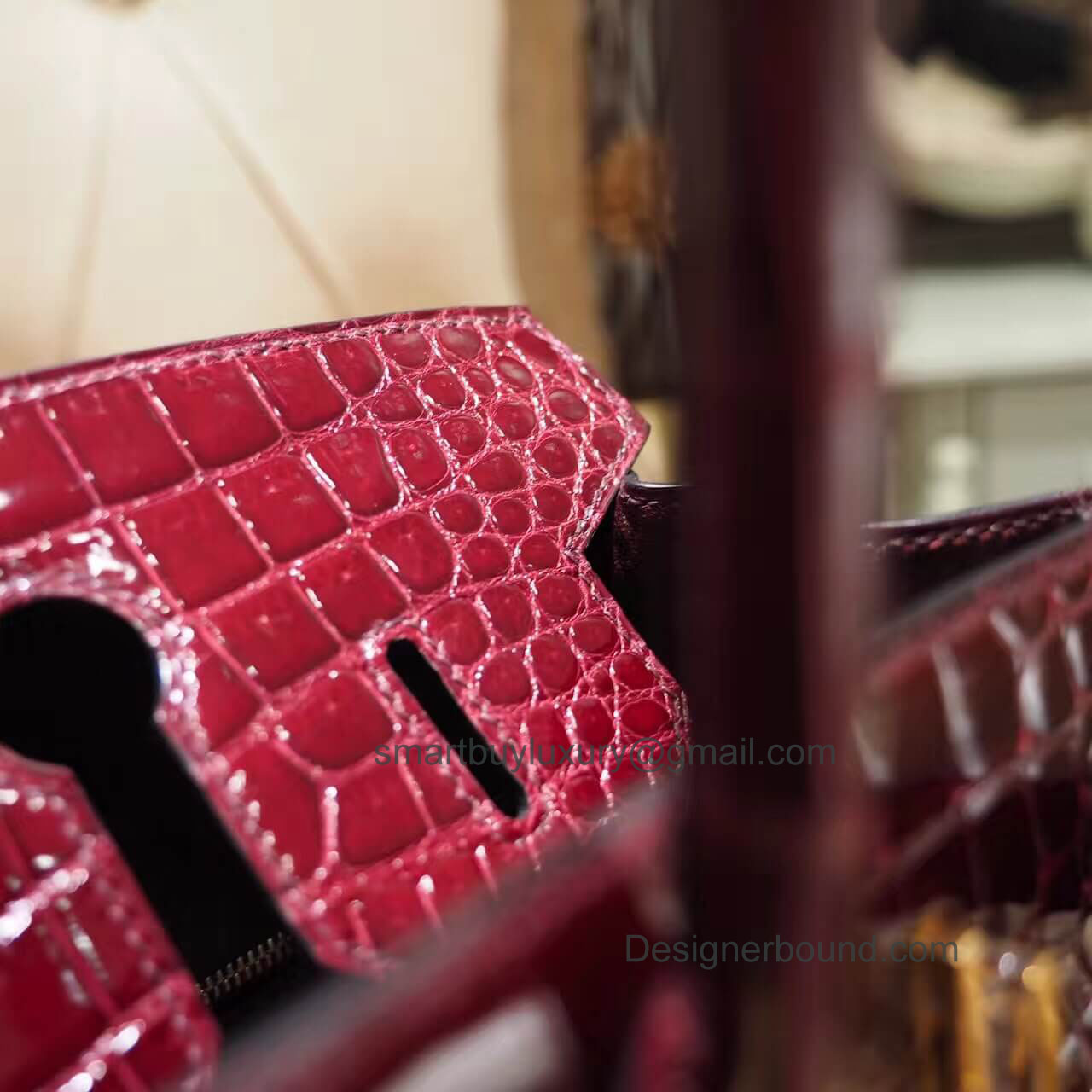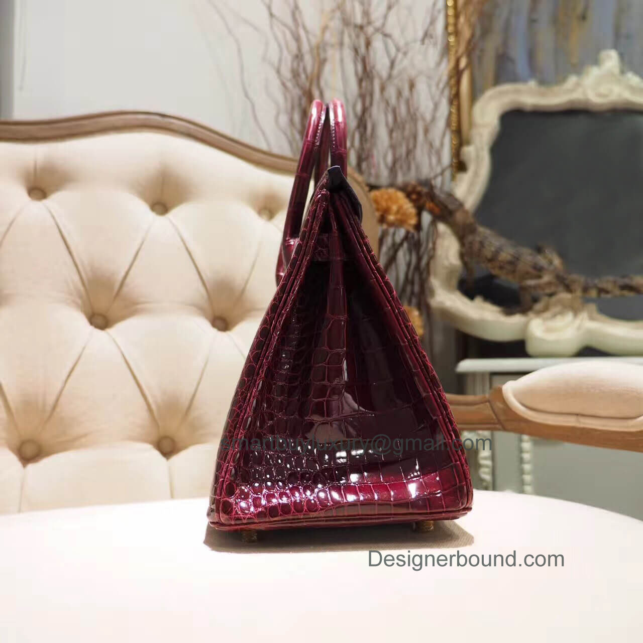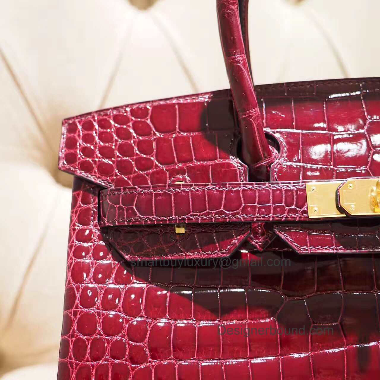 HERMES BIRKIN 30 BAG IN F5 BOURGOGNE SHINY POROSUS CROC GHW