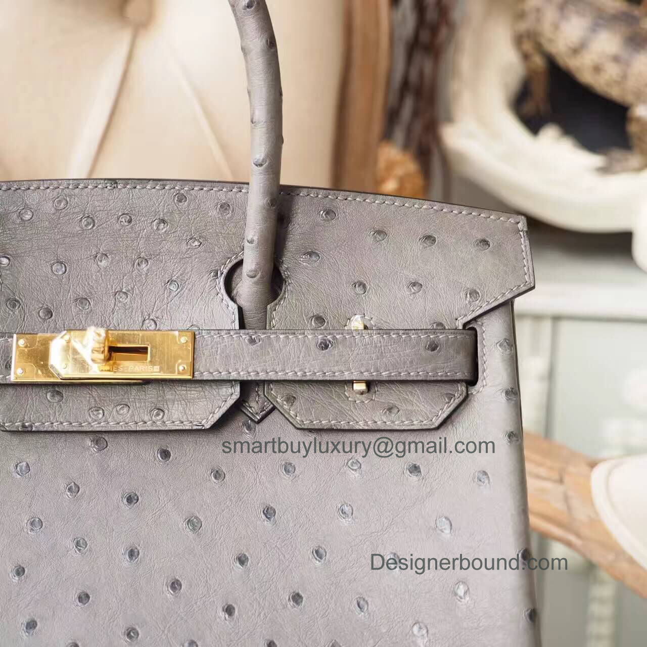 Home  >  SHOP BY DESIGNERS  >  HERMES EXOTIC > Hermes Birkin 30 Handbag in ck82 Gris Agate Ostrich GHW