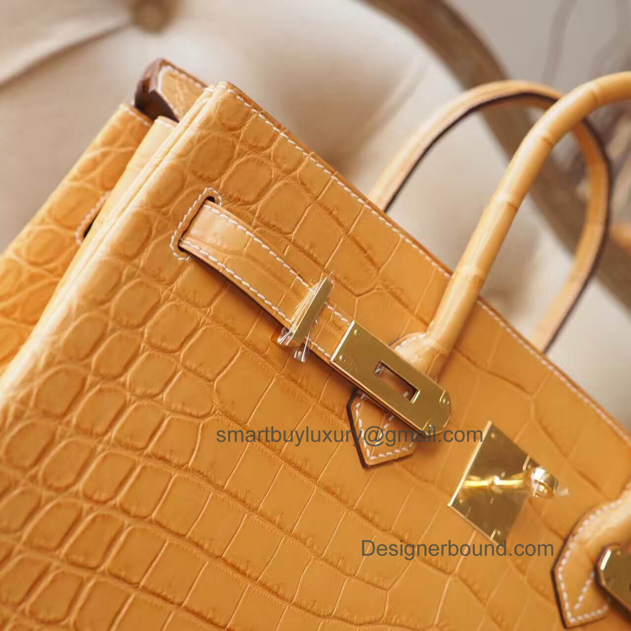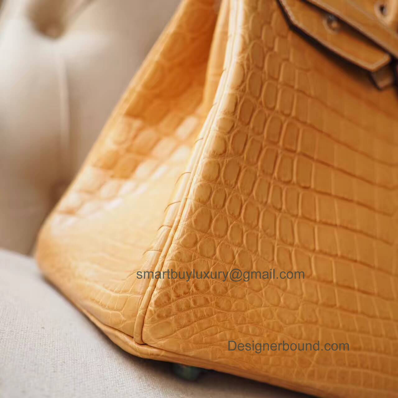 Home  >  SHOP BY DESIGNERS  >  HERMES EXOTIC > Hermes Birkin 35 Bag in 1g Mais Matte Porosus Croc GHW