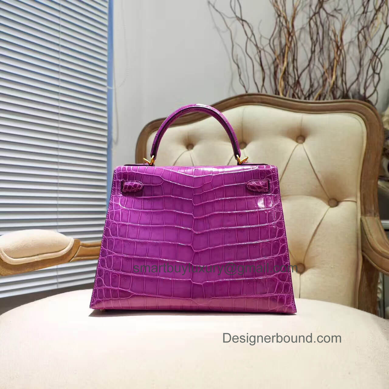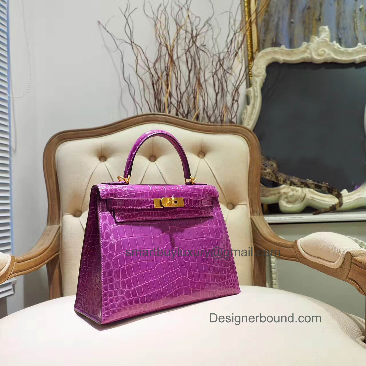 Home  >  SHOP BY DESIGNERS  >  HERMES EXOTIC > Hermes Kelly 28 Bag in 5c Violet Shiny Porosus Croc GHW