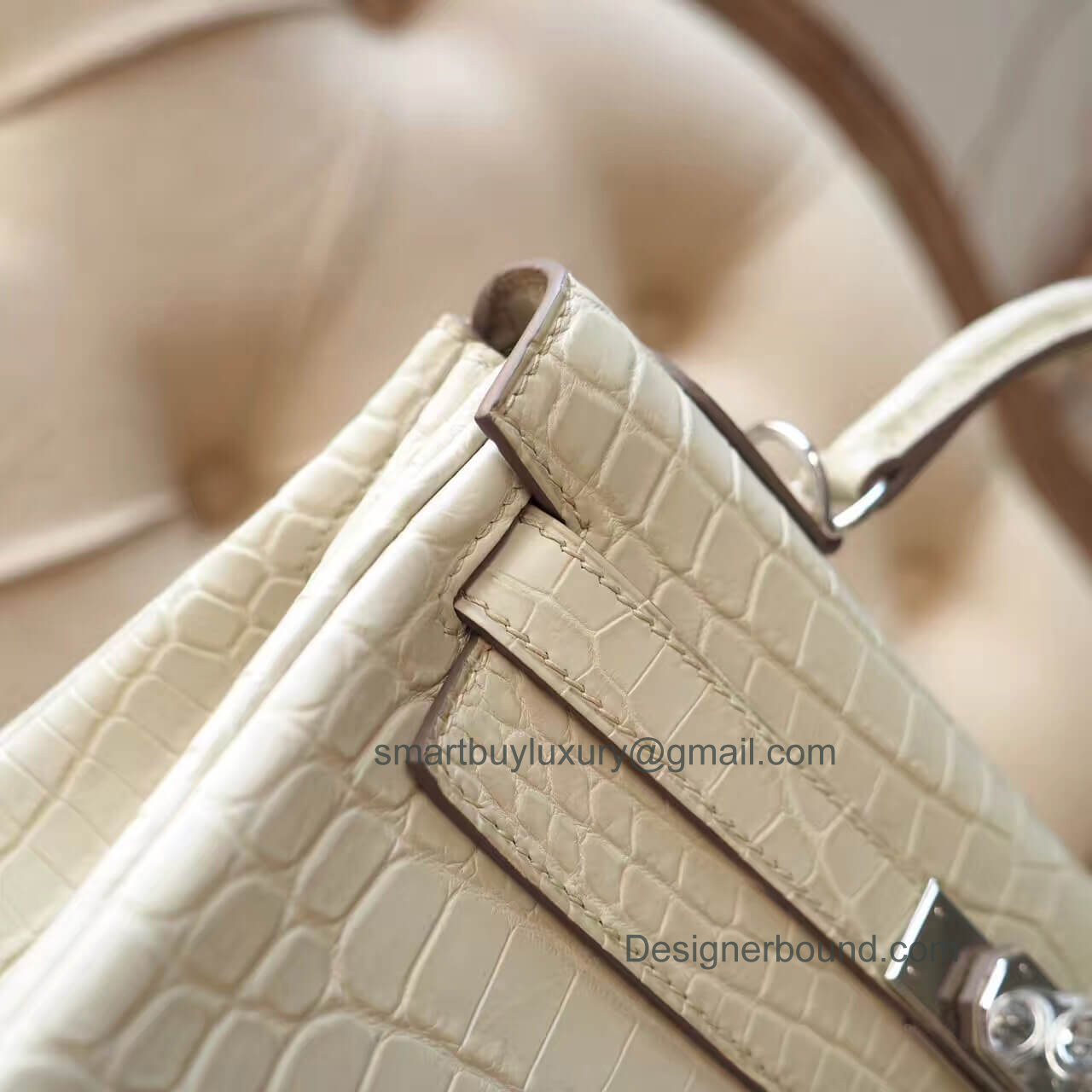 HERMES KELLY 28 BAG IN 8L BETON MATTE NILE CROC PHW