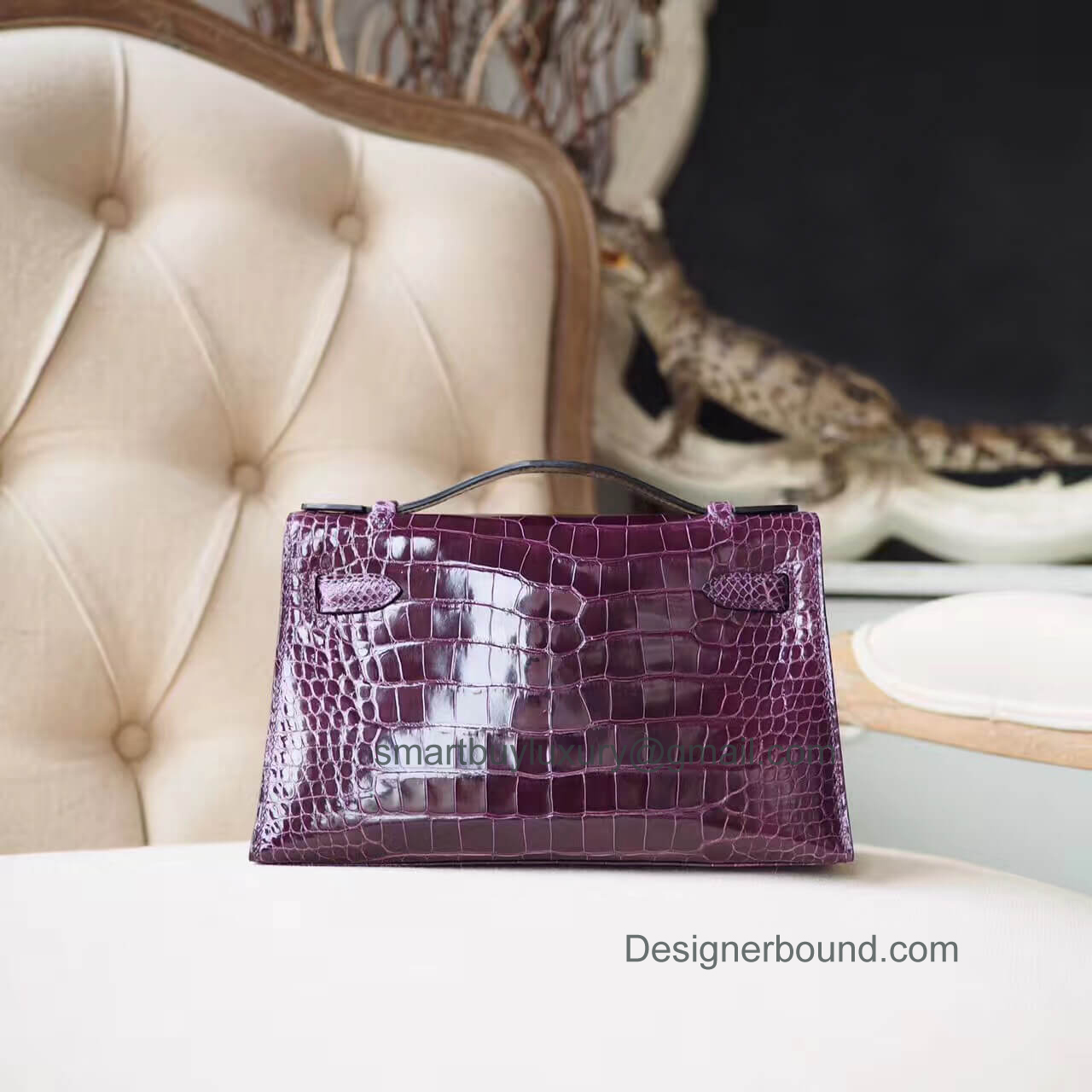 Home  >  SHOP BY DESIGNERS  >  HERMES EXOTIC > Hermes Mini Kelly 22 Pochette Bag in n5 Cassis Shiny Alligator PHW